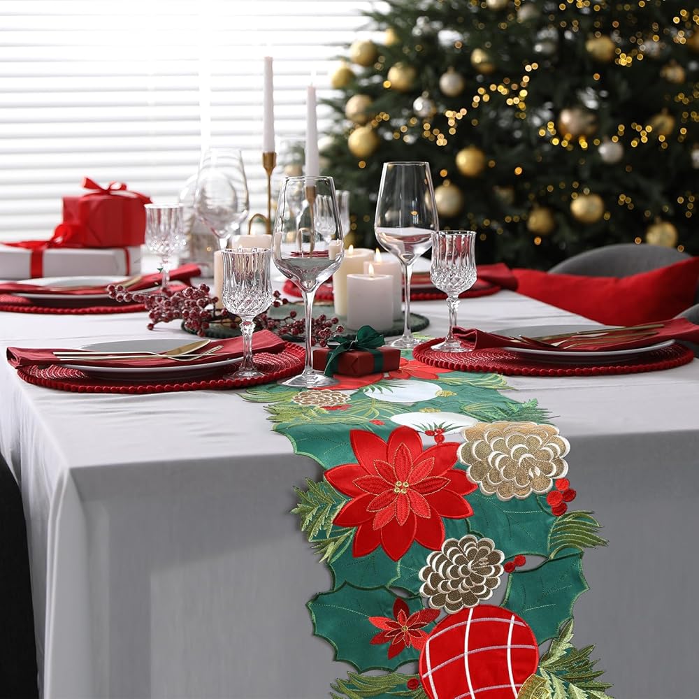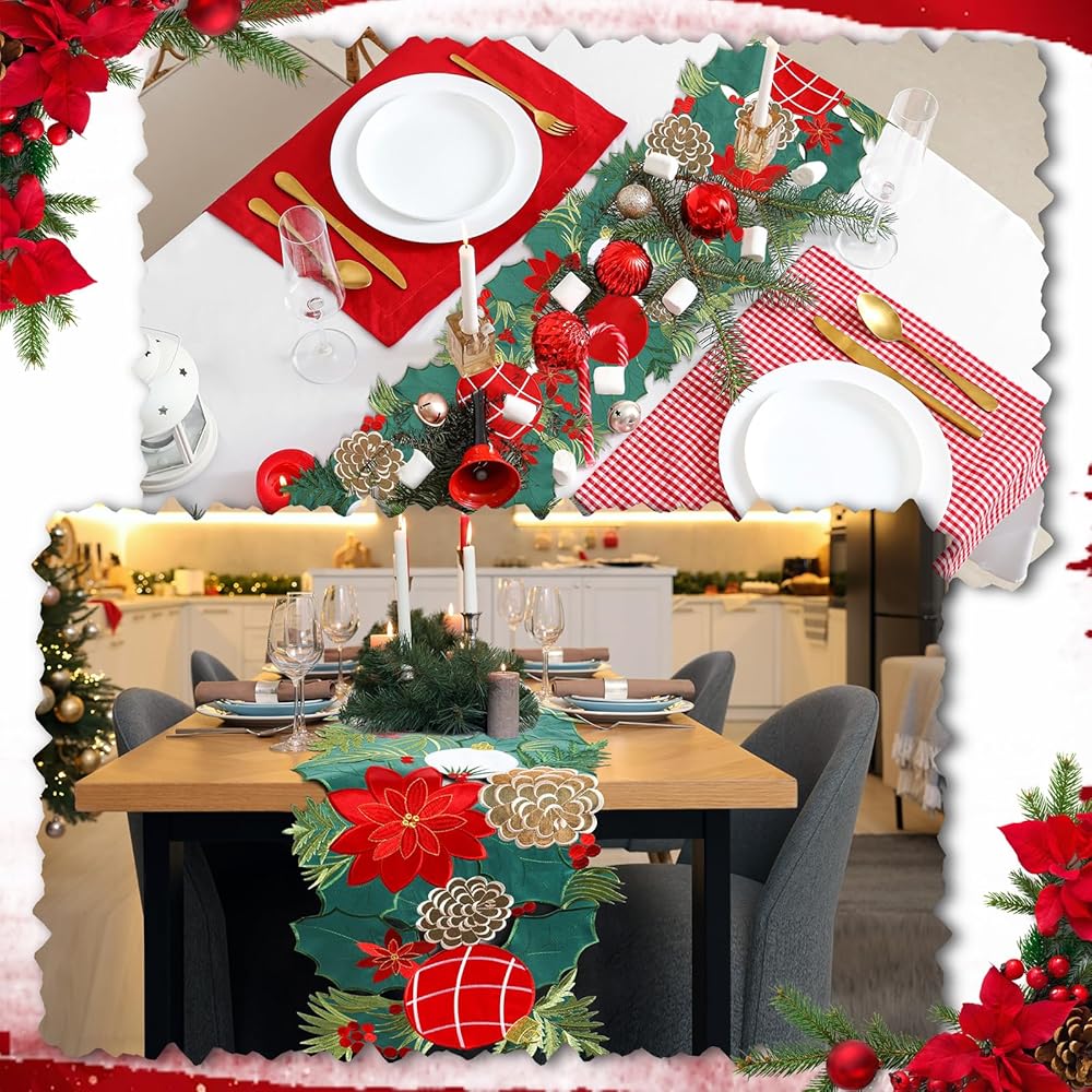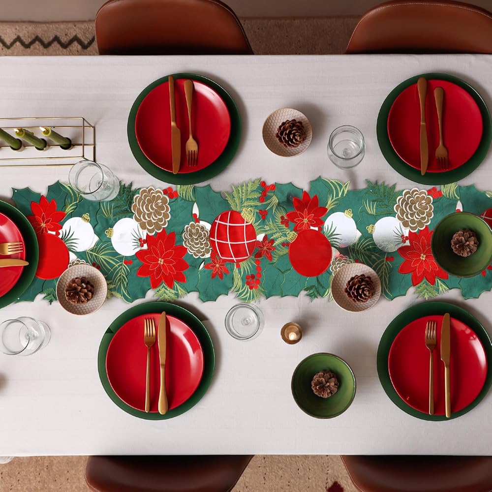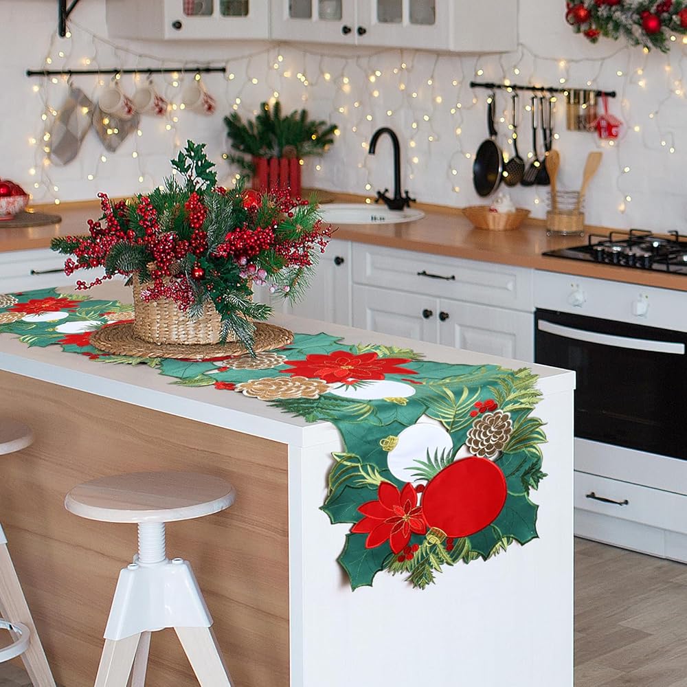 The table runner decoration with charming and simple style design will add freshness to any room, full of festive atmosphere.Perfect for Christmas table decoration,kitchen dining daily use themed party decoration, holiday and special events celebration