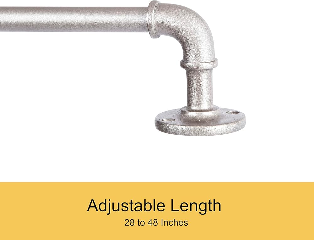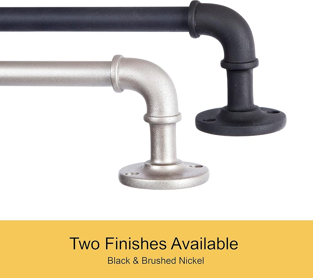 The 5/8 inch diameter Adler industrial pipe-style curtain rod has a rust-resistant coating that protects the rod from the elements. It is the perfect solution for both inside and outside your home. Versatile in design, ceiling or wall mount this curtain rod on larger windows, in larger rooms, on your deck, or in a pergola to hang light to heavyweight curtains, including blackout curtains. The telescoping rod adjusts from 28 inches to 48 inches and projects 3.5 inches from the wall. It is ideal for hanging curtains with pockets, grommets, back tabs, and tab tops, but can also be used with clip rings. It is available in rust-resistant black and brushed nickel finishes.