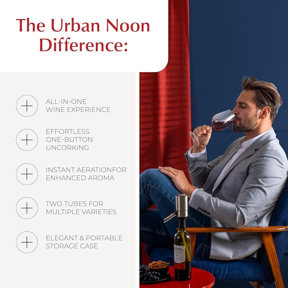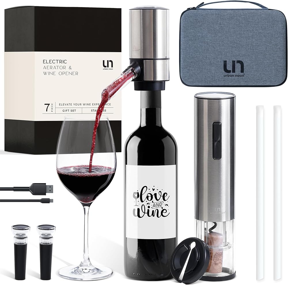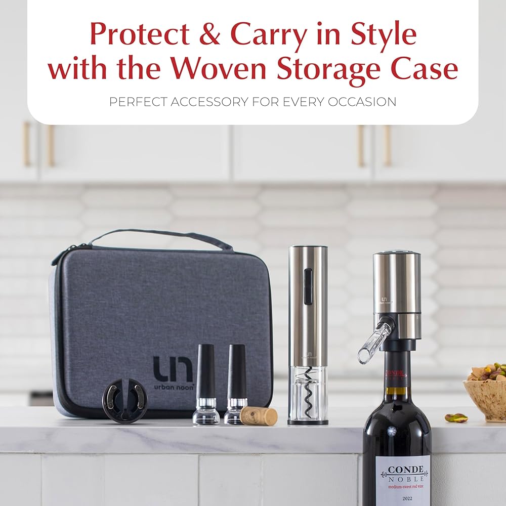 هدية لا تتأثر بمرور الزمن لمحبي النبيذ: مجموعة فتاحة زجاجات النبيذ الكهربائية المريحة والأنيقة والعملية مثالية لخبراء النبيذ بغض النظر عن الوقت من العام، سواء كانت ذكرى سنوية أو هدية عيد الميلاد.