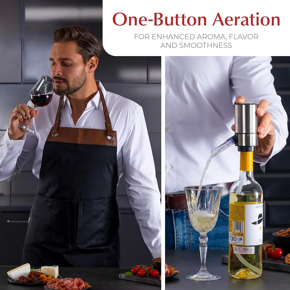 بدون جهد وفعال: استمتع بتجربة فتح النبيذ بدون جهد مع فتاحة النبيذ الأوتوماتيكية، ببساطة قم بصبها وصبها بضغطة زر دون كسر الفلين! استخدم ميزة التهوية بزر واحد لتعزيز رائحة ونكهات ونعومة النبيذ الخاص بك على الفور