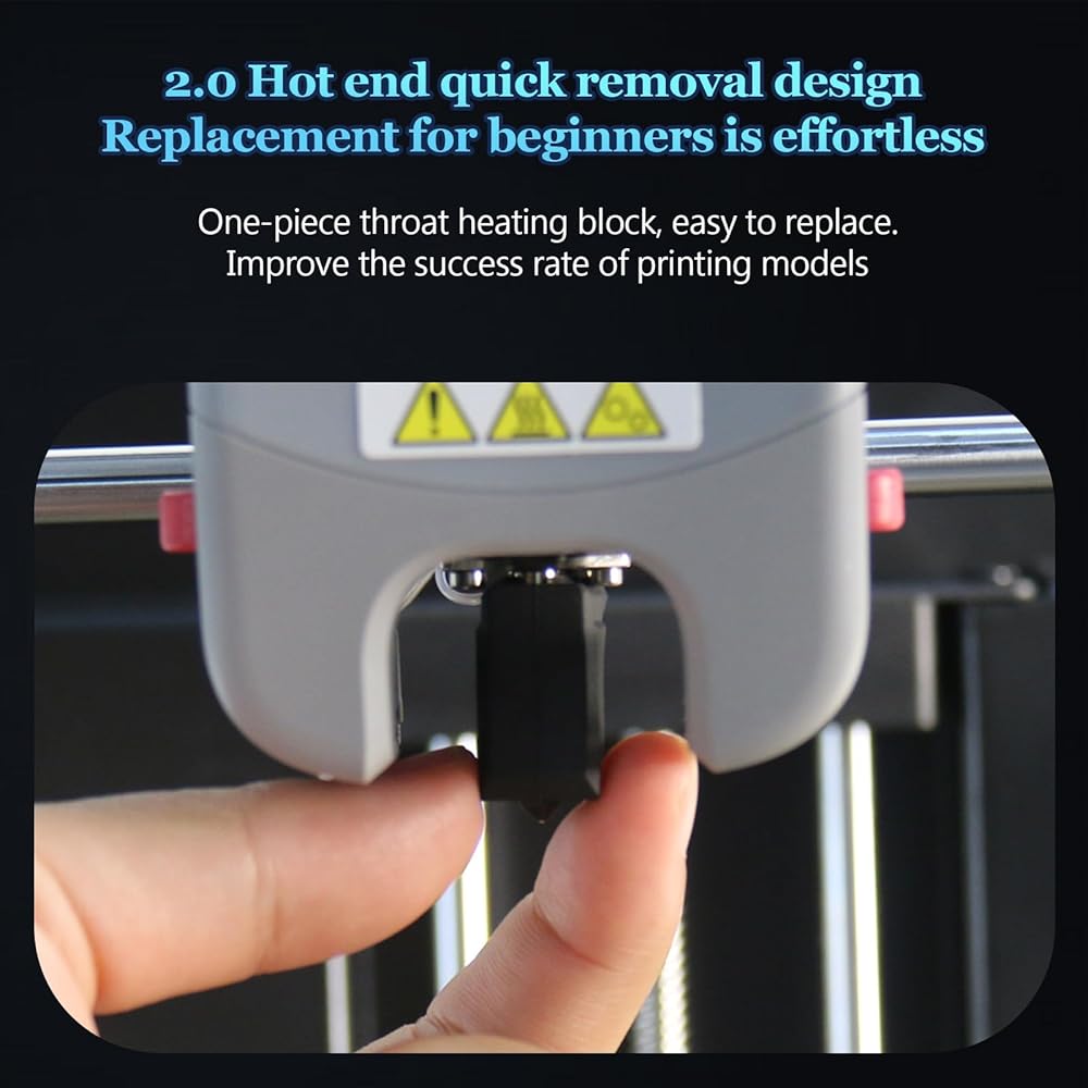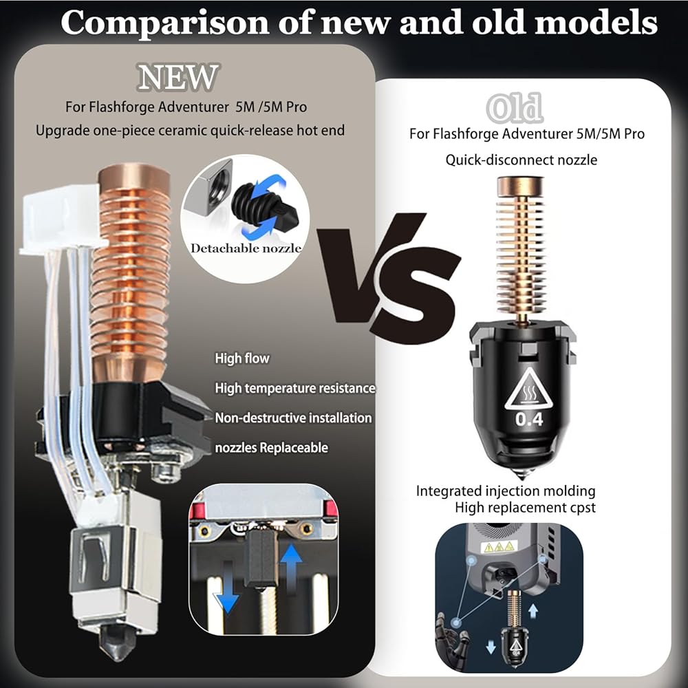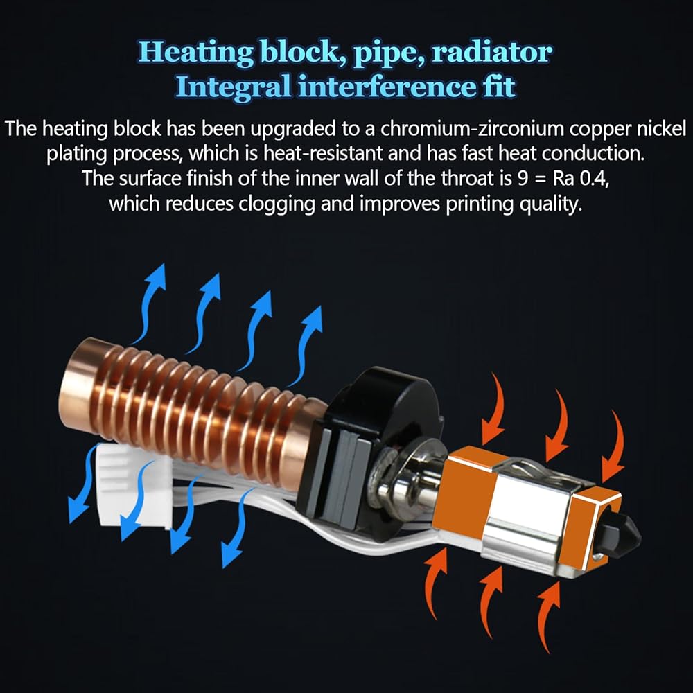 This upgrade V2.0 hotend kit is designed specifically for Adventurer 5m/Adventurer 5m Pro 3D printers. The heating block adopts advanced chromium zirconium copper nickel plating technology, with excellent heat resistance and rapid thermal conductivity. Combined with the ultra-high smoothness design of Ra0.4 on the throat inner wall, it effectively reduces clogging during the printing process and significantly improves printing quality. It is widely compatible with various 3D printing filaments such as 1.75mm PLA, ABS, PETG, TPU, PP, PC, etc.,allowing you to easily upgrade your printing experience. Automatically smooth the first layer without defects, reducing printing failure rates and improving overall efficiency. The 2.0 version of the hot end design adopts a quick disassembly structure, and the integrated throat heating block is easy to replace, making it easy for even beginners to operate. In addition, this upgraded print head hot end nozzle can be replaced. This design not only extends the service life of the print head, but also saves users replacement costs by simply replacing the nozzle instead of the entire print head. The hardened steel nozzle is wear-resistant and corrosion-resistant, supporting high-strength materials such as carbon fiber ABS and nylon printing. With a powerful heating power of 50W and ceramic rapid heating technology, it can reach up to 280 ° C, meeting your diverse needs for high-temperature material printing. Whether you are a professional designer or a 3D printing enthusiast, this upgrade kit can bring you unprecedented printing pleasure and quality improvement.