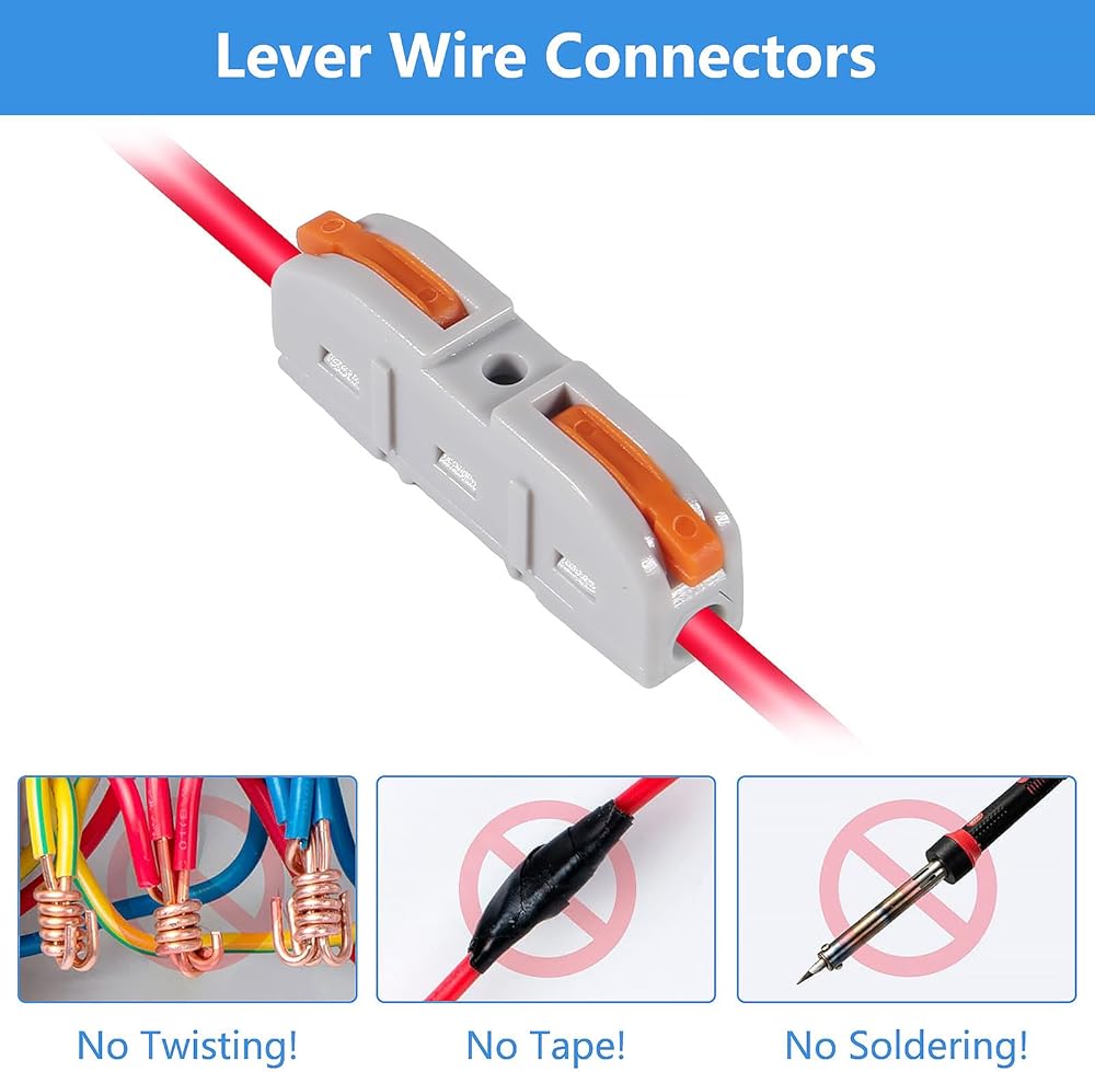 【Performance Upgrade】Lever wire connector instead of traditional electrical tape and electrical butt connectors twist-type, reduces wiring time. Make connections cleaner, space-saving and low-maintenance.