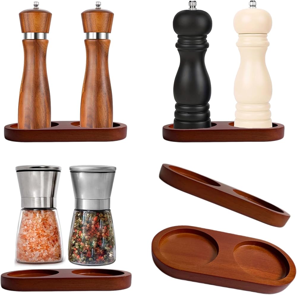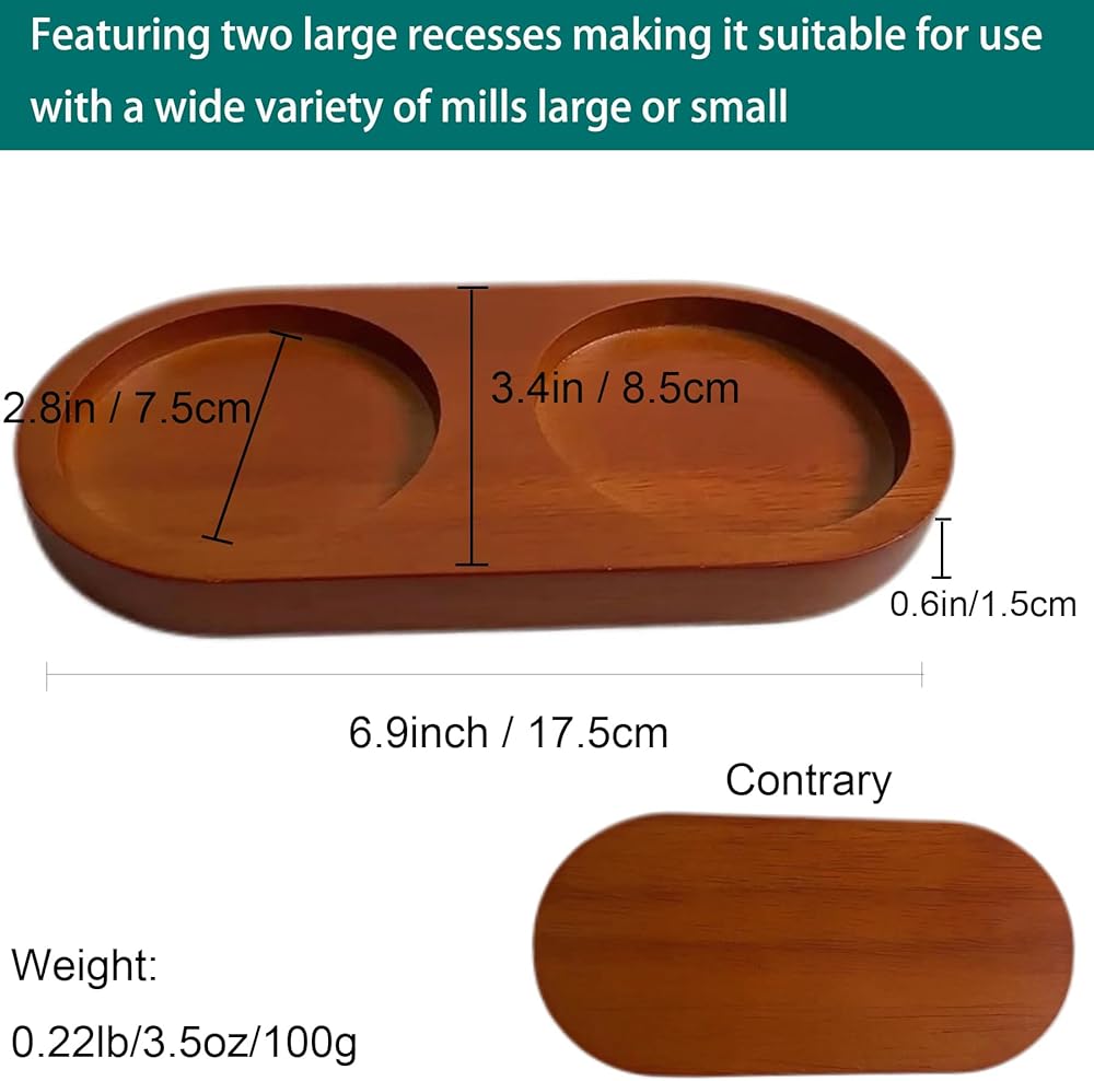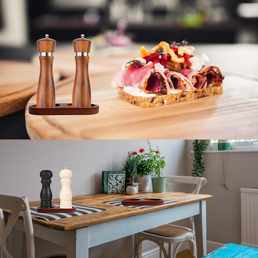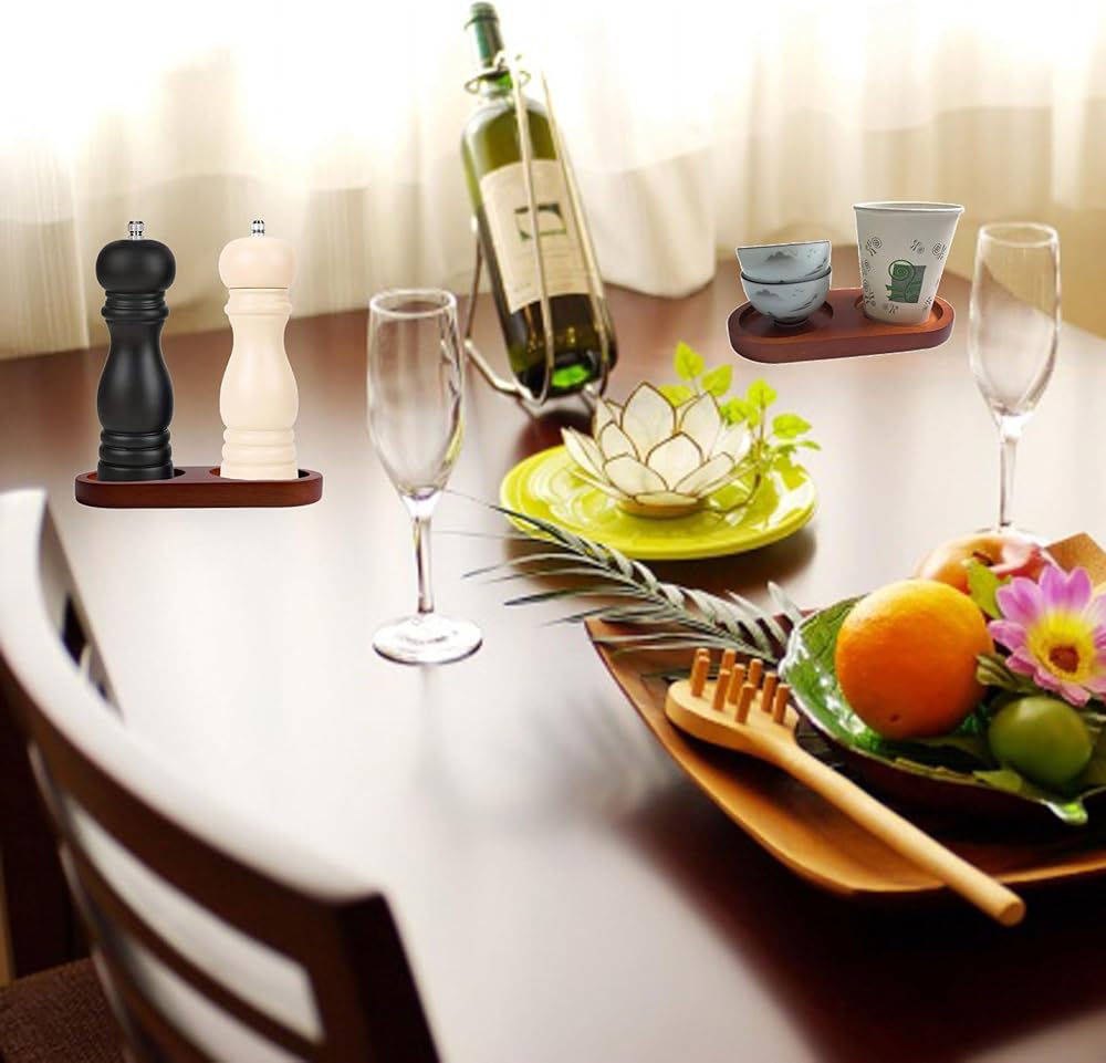 Salt & Pepper Mill Tray is designed into store salt and pepper when not in use, can be placed on table, kitchen, counter, etc., will not occupy much space, you can also put your pepper grinder on it, a nice tool keeping countertops clean and tidy., suitable for home, restaurant, etc., will bring a lot of convenience to your life.