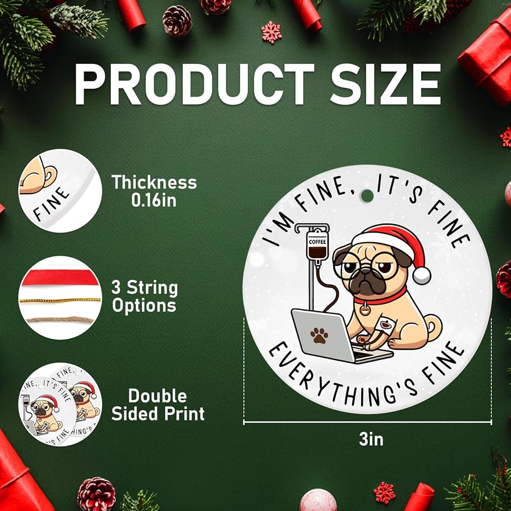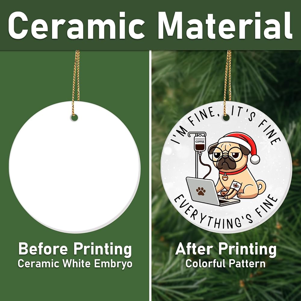تتضمن زينة عيد الميلاد ما يلي: تشتمل كل زينة عيد الميلاد 2024 على زينة خزفية واحدة يبلغ قطرها 2.9 بوصة، وسمكها 0.12 بوصة، وخيوط للتعليق. مناسبة لأشجار الكريسماس، وديكورات الكريسماس للسيارة، وديكور المنزل، وزينة الكريسماس لشجرة الكريسماس.