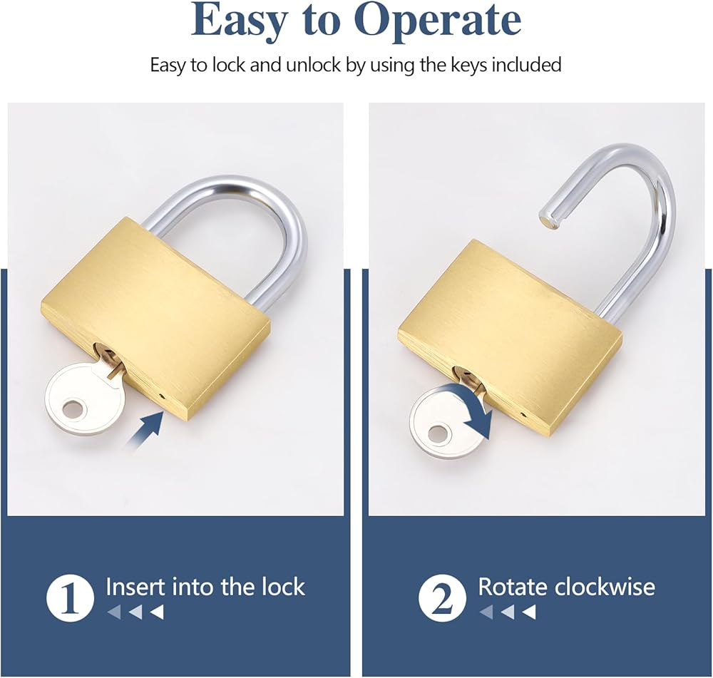 • Package includes: 2 solid brass padlocks with a total of three brass keys. Padlocks are packed by white box, better packaging, receive more intact products.