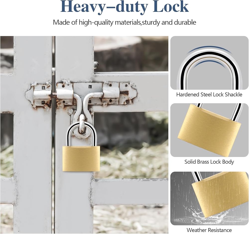 • Strong Material: The lock body is made of 1 piece of brass with exquisite cutting process, corrosion-resistant, perfect for indoor and outdoor use.