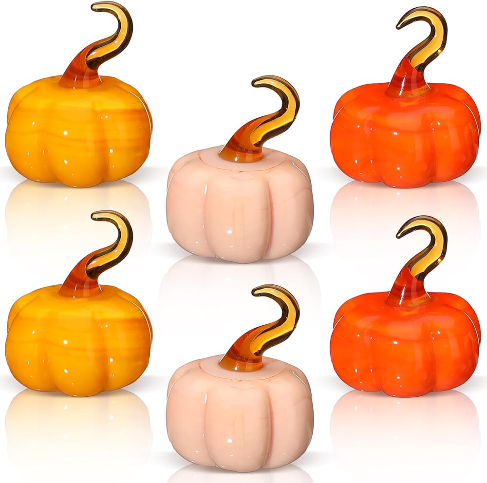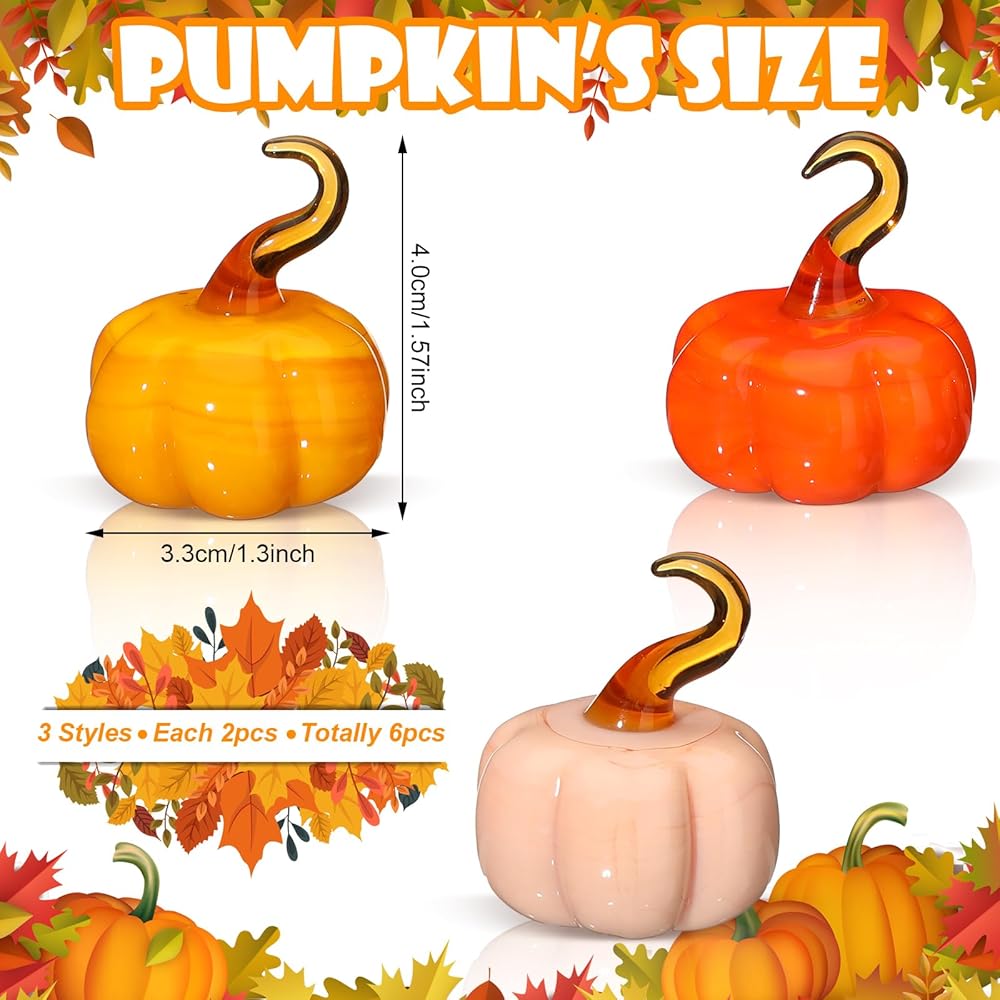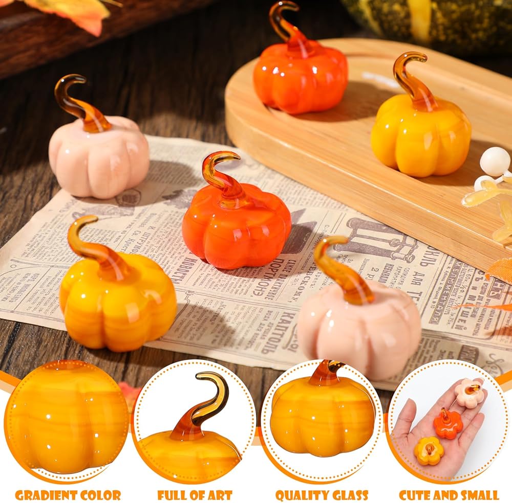 Discover a variety of decoration with this set of 6 glass pumpkin figurines. Nice as collectibles or as mini pumpkin decorations, they fill your space with the festive atmosphere of fall, creating a warm and inviting ambiance.