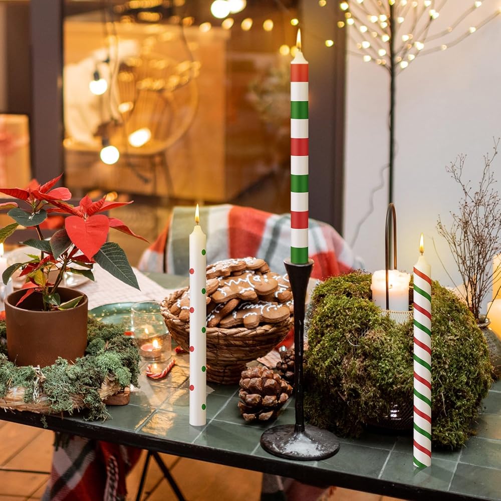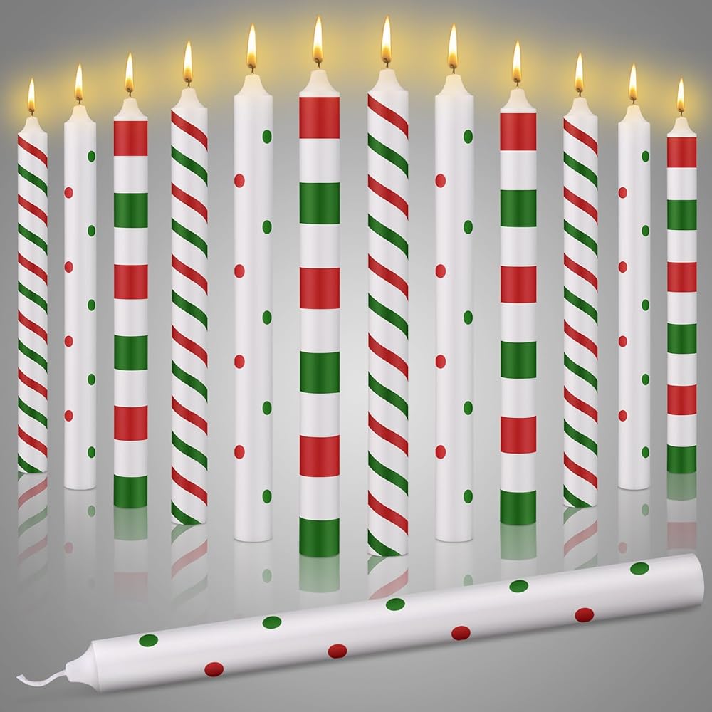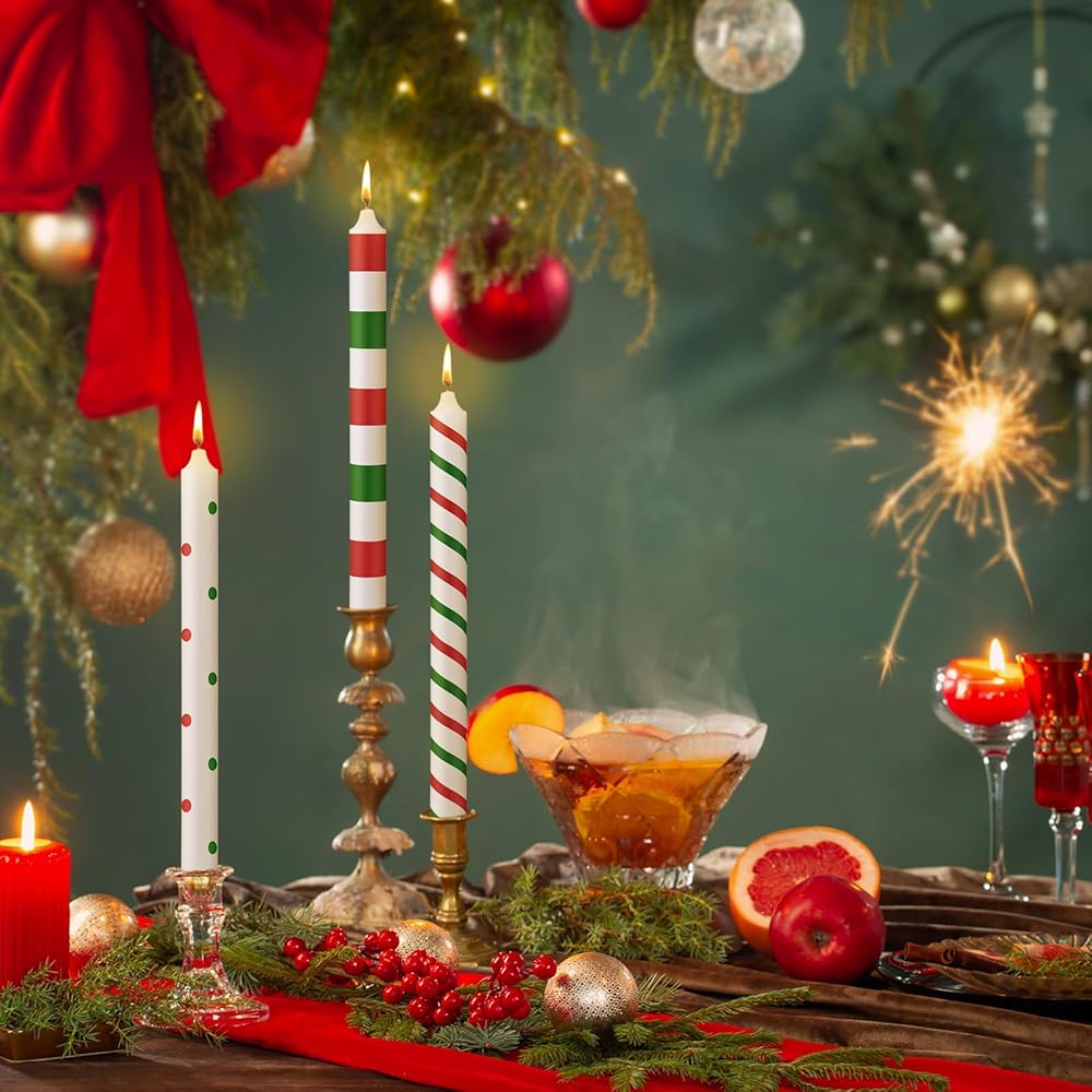 12 قطعة شموع عيد الميلاد المستدقة 10 بوصة أحمر أخضر شموع عيد الميلاد كاندي مخططة شموع مستدقة هدايا لتزيين الطاولة وحفلات العشاء