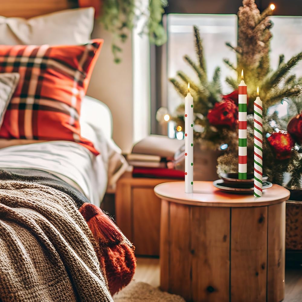 • Ideal for Various Occasions: our Christmas white green red candles are suitable for many occasions; Whether it's a Christmas party, a New Year's Day party, or simply a celebration, these candles are practical for adding that extra touch of warm ambiance
