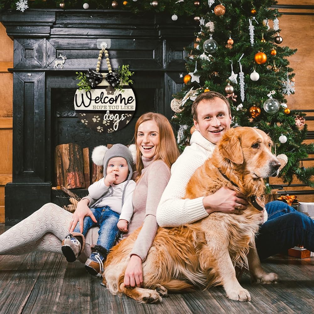 Unique Gift: Each crafted farmhouse welcome sign for front door is handmade, so that yours will be the only one exactly like! Each welcome dogs door hanger is a good idea for a housewarming gift, birthday gift or Christmas gift, especially for dogs lovers and dogs families.Make a friend smile with this cute dogs welcome sign indoor and outdoor.