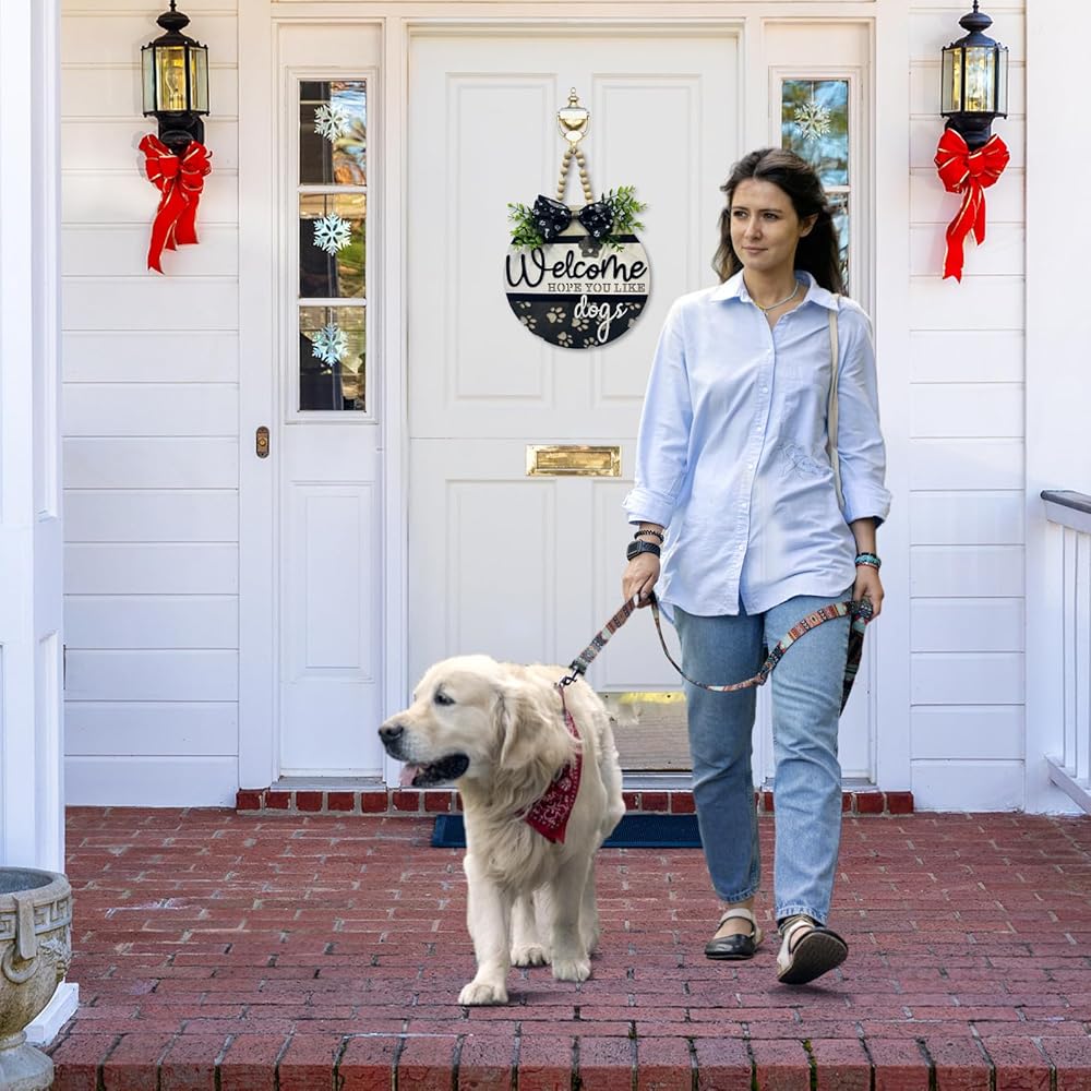 Cute Design: Designed with unique, funny word “ Wecome we hope you like dogs" with cute paw print, the welcome wreaths for front door will be a friendly and hospitable way to remind your guest you have dogs and show the best welcome to your friends!