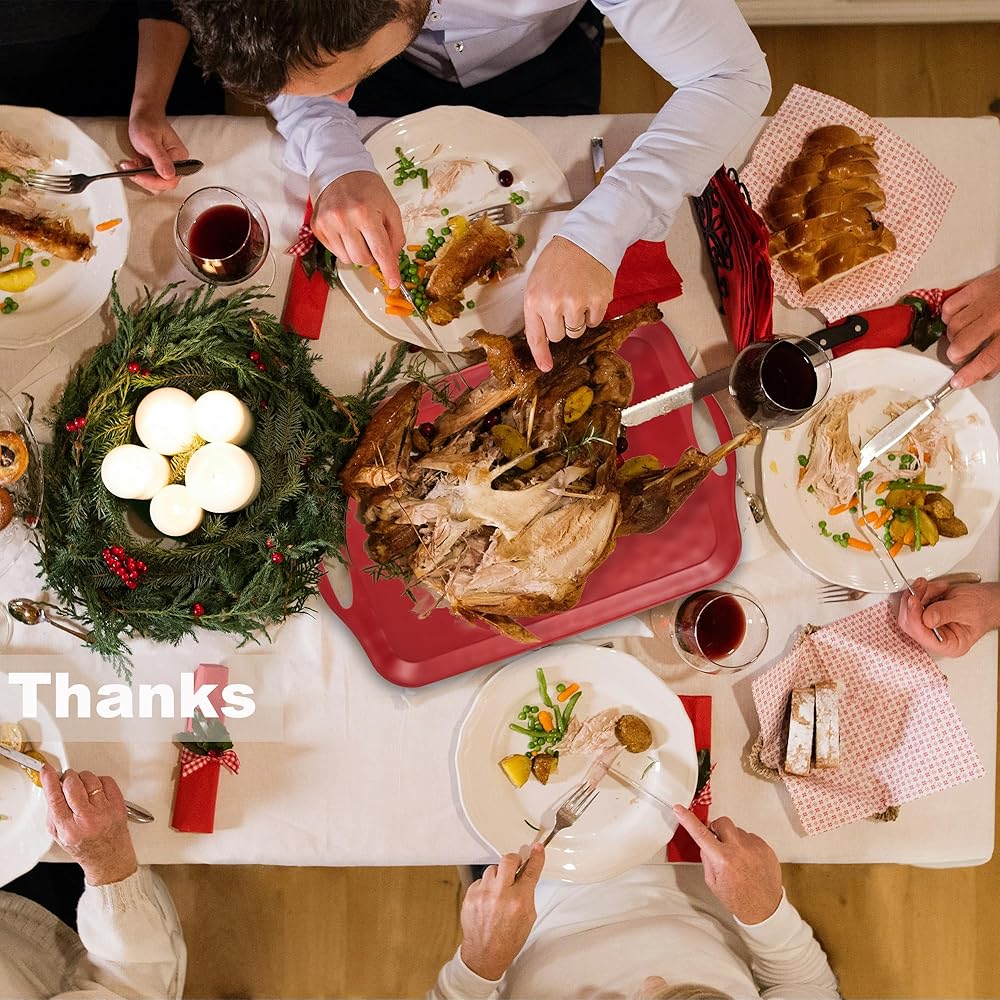 • صواني تقديم كبيرة مقاس 20 بوصة: بأبعاد 20 بوصة × 13 بوصة × 1.2 بوصة، فهي تقريبًا تخدم جميع الأغراض عند استخدام هذا الطبق، الذي يحتوي على مساحة كافية للدجاج أو الديك الرومي بالكامل؛ وبالتأكيد يمكن استخدامها كصينية طعام لتقديم المزيد من الحلوى والفواكه في التجمعات العائلية الكبيرة أو الترفيه