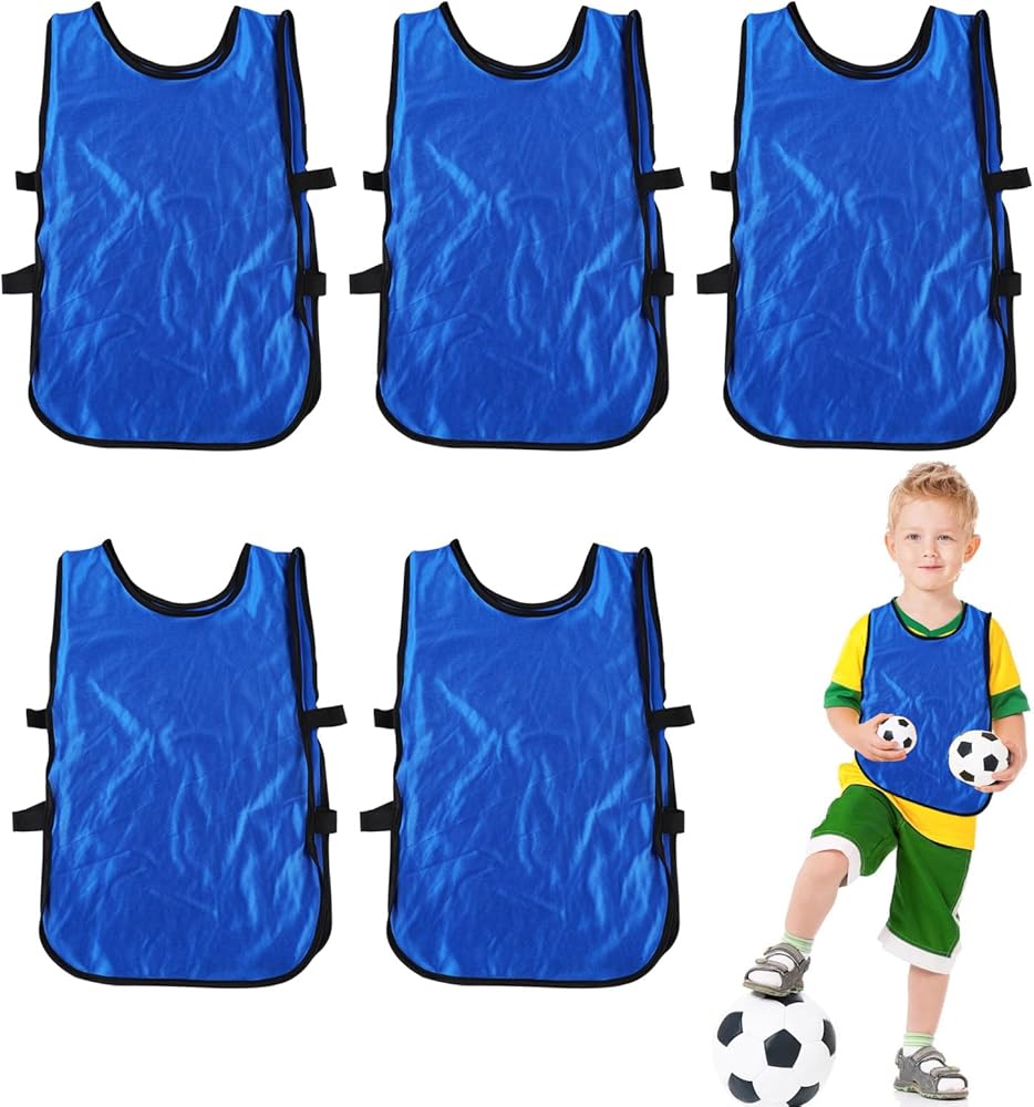 5 قطع من سترات Pinnies Scrimmage لتدريب الفريق من الجيرسيه للأطفال والشباب في سن المراهقة والأطفال في سن المراهقة سترة كرة القدم Pinnies للشباب سترات رياضية (أزرق)