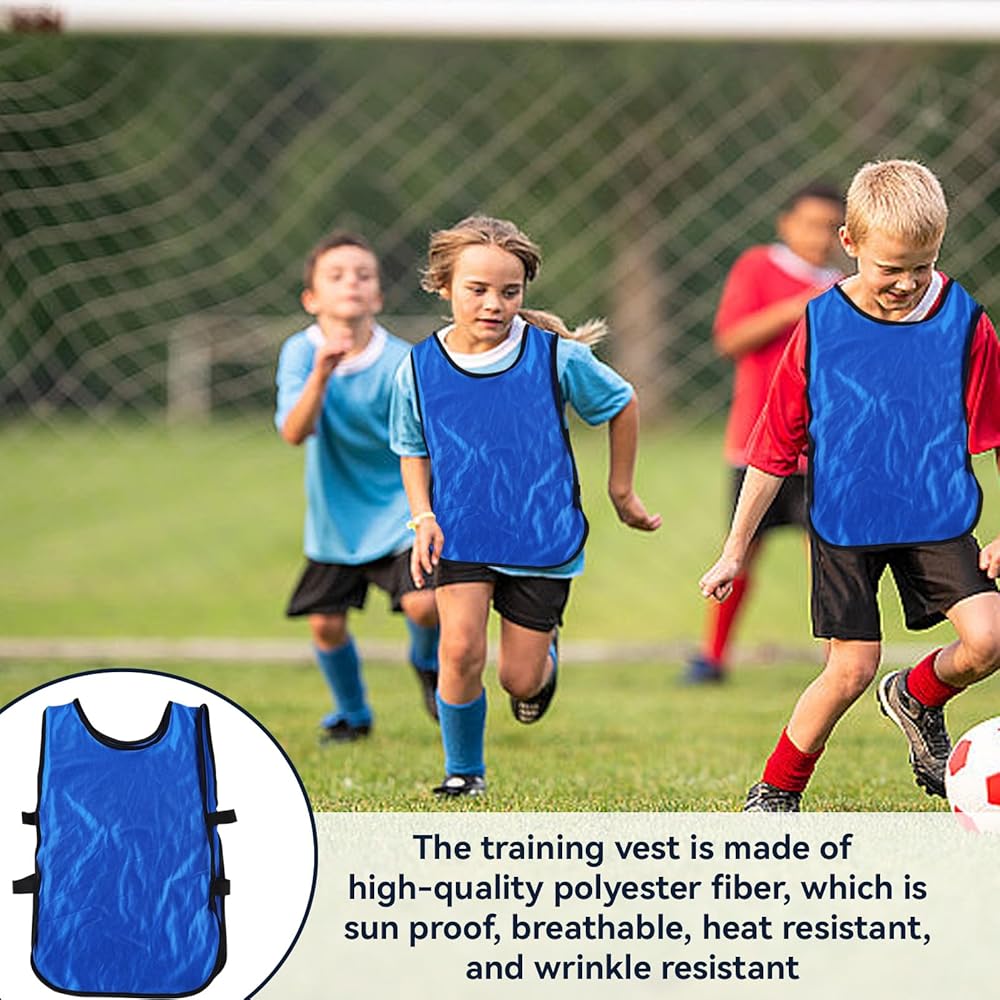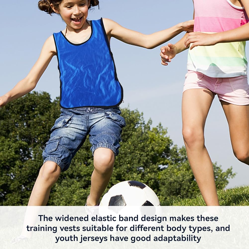 POLYESTER FABRIC: These kids practice pinnies are made of excellent polyester, sunshade and breathable, heat and wrinkle resistance.