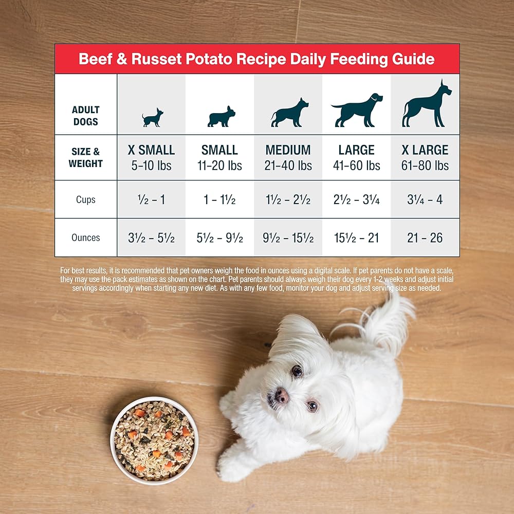 للبالغين والجراء في مرحلة النمو: يحتوي طعام الكلاب الطازج المجمد هذا على نسبة أعلى من الكالسيوم والفوسفور، مما يجعله مثاليًا لنمو الجراء، كما أنه متوازن غذائيًا للتغذية طويلة المدى لكل من الجراء والكلاب البالغة.