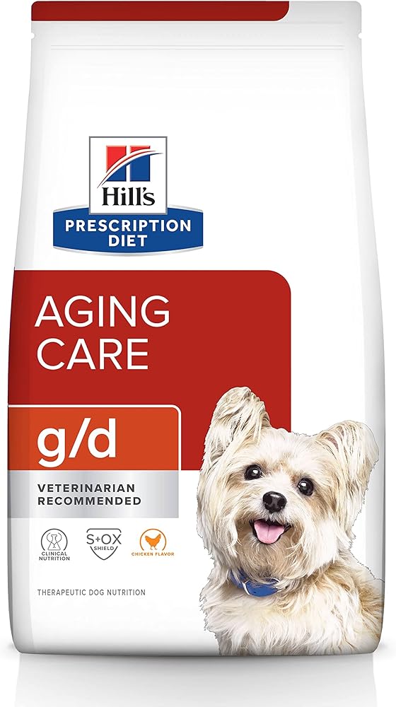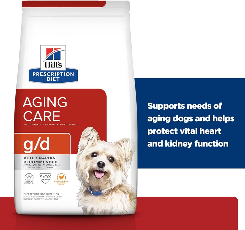 Hill's Prescription Diet g/d Aging Care Chicken Flavor Dry Dog Food is specially formulated by Hill's nutritionists and veterinarians to support your aging senior dog's kidneys and heart for overall health