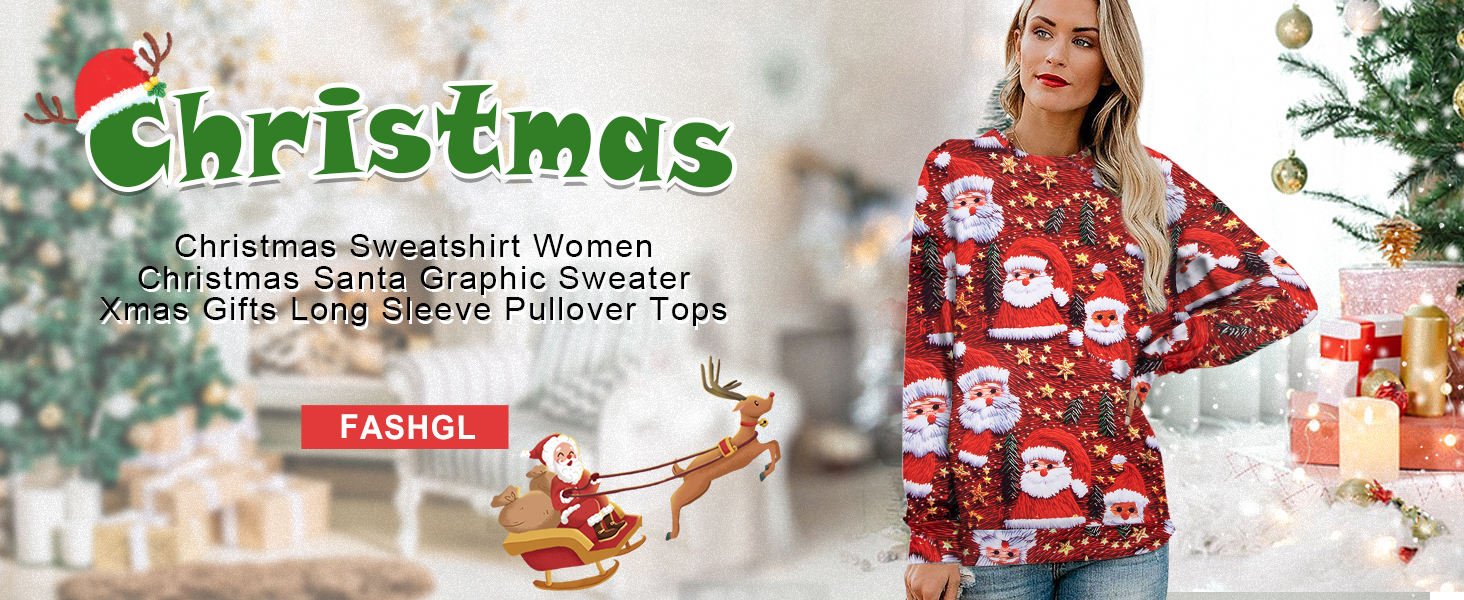 FASHGL عيد الميلاد البلوز المرأة القبيحة عيد الميلاد سانتا الجرافيك قميص مضحك هدايا عيد الميلاد طويلة الأكمام البلوز القمم