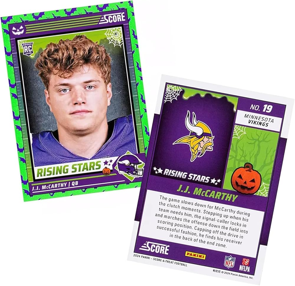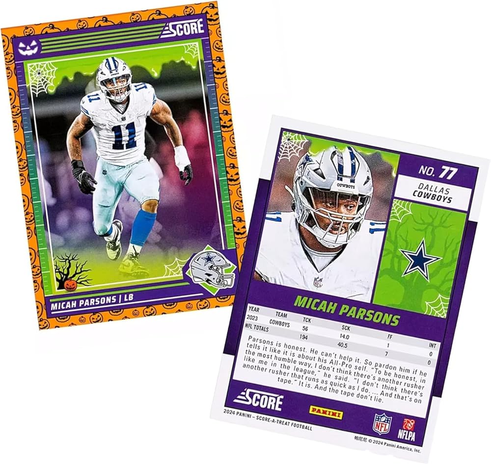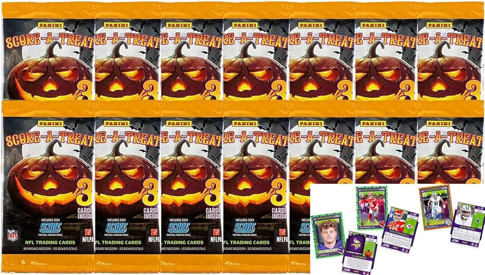 Dive into the excitement of the 2024 NFL season with the Panini Score Football Trading Cards 14-Pack Bundle. This exclusive collection is specially designed for fans and collectors, featuring 14 packs of high-quality trading cards. Each pack includes 3 cards, with a chance to find rare inserts, rookie cards, and even autographs from your favorite players. The Halloween edition adds a festive touch, making it a perfect gift for NFL fans during the spooky season. Whether you're a seasoned collector or new to the hobby, this bundle offers great value and endless enjoyment.
