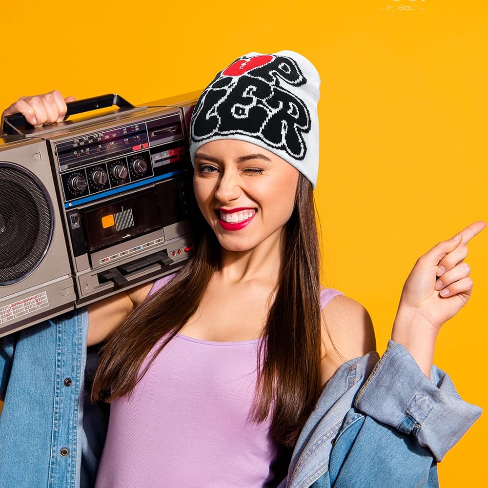 High Quality Y2K Beanies: Our beanie hats are made of 100% stretchable and soft-touch acrylic material, easy to put on and take off, suitable for indoor and outfdoor. One size-fits-all beanies fit from women men and teens.