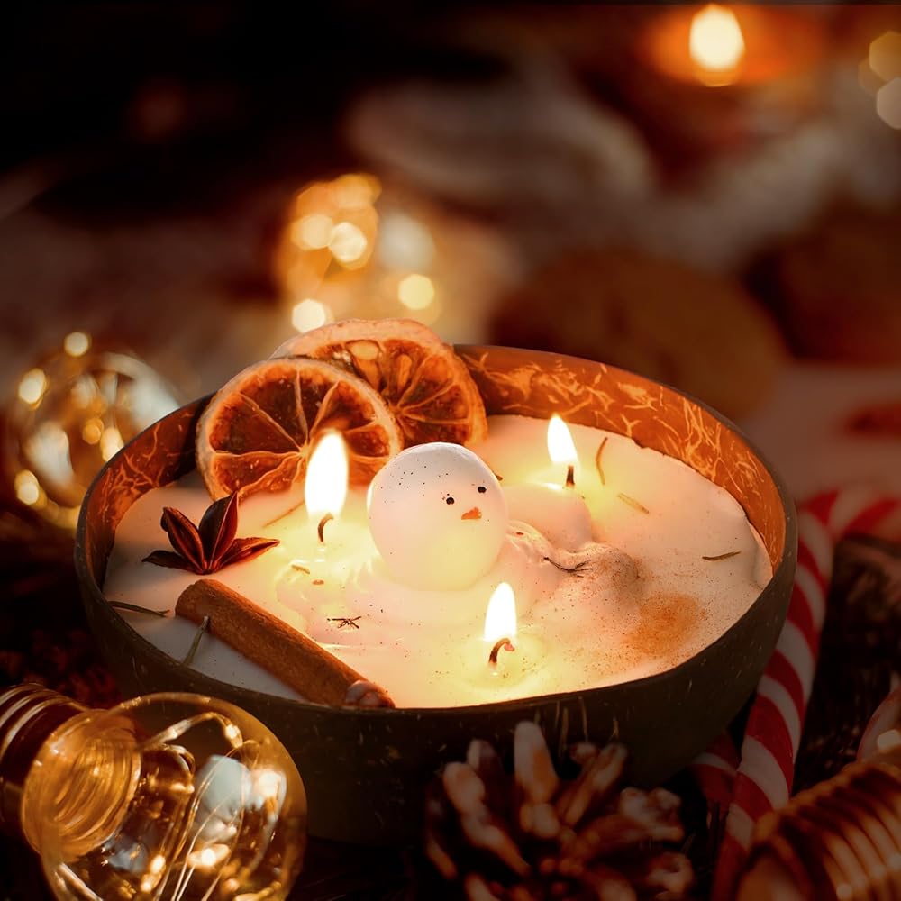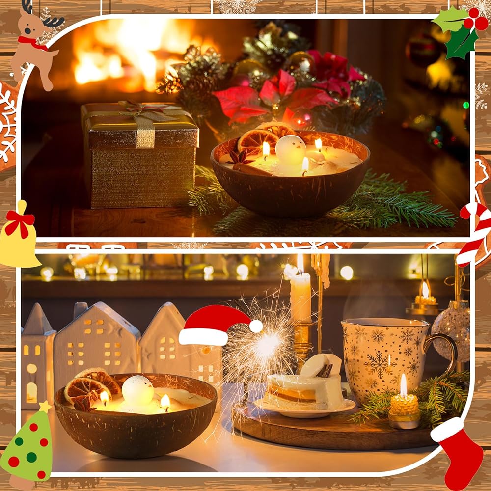 • Christmas Decoration for Home: the snowman coconut bowl candle are very suitable for your Christmas decorations indoor; When night falls, light the bowl candles and add a warm light source to your Christmas party or winter party; When the candles are lit, they will have a faint soybean fragrance