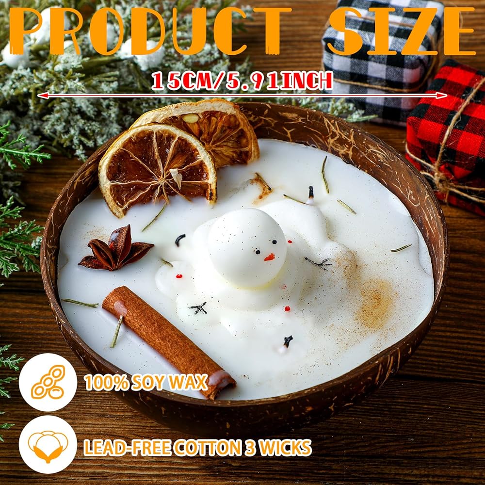• Christmas Snowman Candle: you will receive a snowman coconut bowl candle; The Christmas bowl candle has lemon slices, star anise, cinnamon sticks, cloves, and wax snowman at the top, which is elegant in shape and original in design