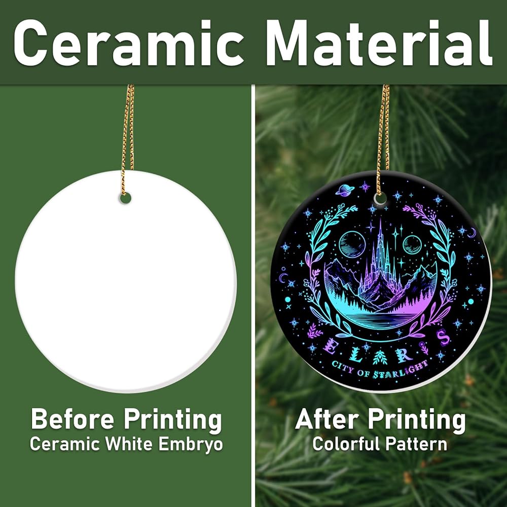 Premium Material Christmas Ornament: Crafted from high-quality ceramic, this ornament measures 2.9 inches in diameter and 0.12 inches in thickness, ensuring both durability and elegance. Ideal as a 2024 Christmas Ornament, Christmas Ornament for Christmas tree, Christmas Ornament, Christmas Keepsakes, Xmas Tree Ornaments.
