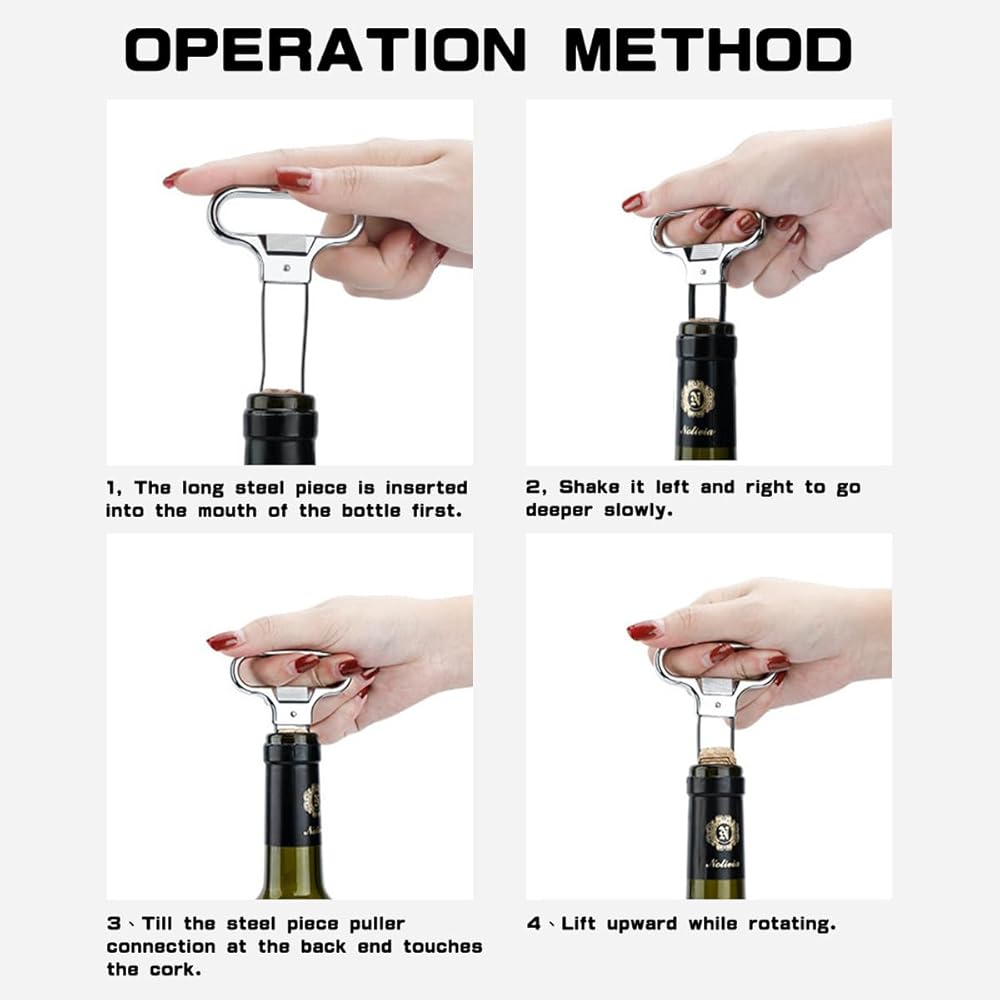 • Simple and easy to use:Simply insert the steel pieces into the bottle mouth on both sides to a sufficient depth, gently rotate and pull out, easy and effortless.