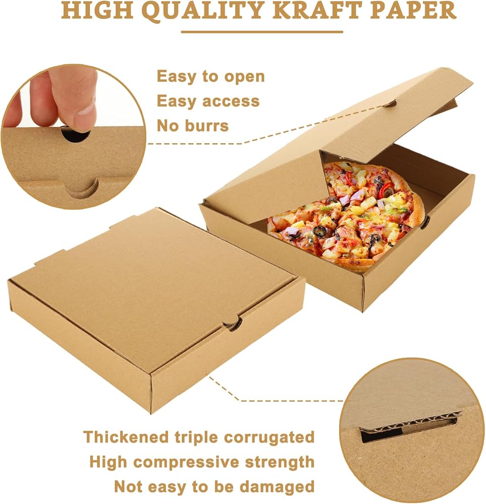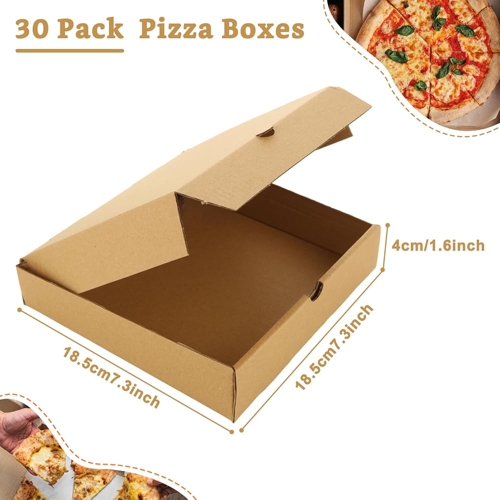 30 صندوق بيتزا عالي السعة: يمكنك الحصول على 30 صندوق بيتزا كرافت للاستعمال مرة واحدة، مقاس كل منها 7.3 × 7.3 × 1.6 بوصة، قوي بما يكفي لتخزين البيتزا جيدًا، وضمان بقاء البيتزا آمنة وطازجة أثناء النقل، وكافية لتلبية احتياجات خدمات التوصيل مثل مطاعم البيتزا أو المطاعم
