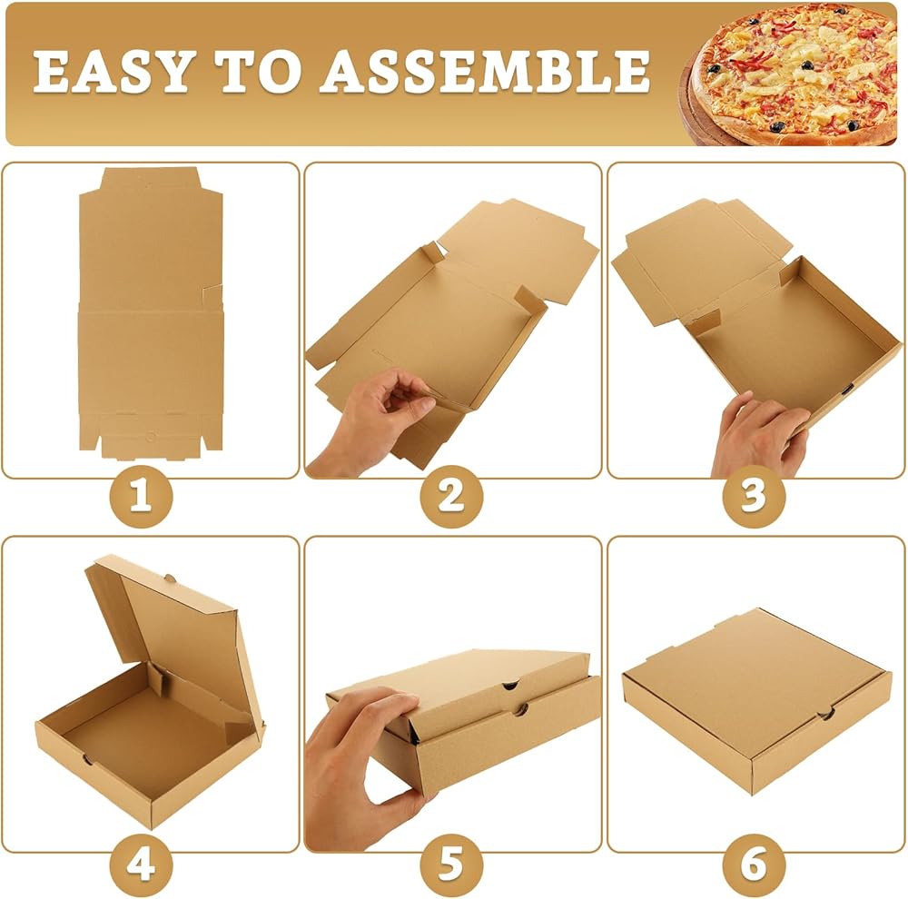سهلة الطي والاستخدام: تتميز صناديق البيتزا الصغيرة هذه بأنها خفيفة الوزن وسهلة التجميع، فقط قم بطيها وفقًا للخطوات الموجودة في الصورة للاستخدام، وبمجرد إغلاقها، فإنها تحافظ على إغلاق جيد، ولا تتفكك بسهولة، وعندما لا تكون بداخلها عند الاستخدام، ليست هناك حاجة للتجميع، لذلك لا تشغل مساحة كبيرة