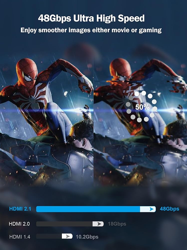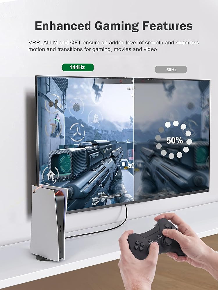 • 【لعشاق الألعاب】يدعم هذا الكابل معدل التحديث المتغير (VRR) الذي يضبط معدل التحديث تلقائيًا في الوقت الفعلي لتحقيق أقصى قدر من أداء بطاقة الرسومات ووحدة المعالجة المركزية. لا يقتصر على 4K@60HZ 120HZ، يمكنه اختراق 4K وتحقيق جودة صورة 8K UHD. كما أنه يدعم نقل الإطار السريع (QFT)، ووضع التشغيل التلقائي المنخفض (ALLM) لضمان مستوى إضافي من الحركة والانتقالات السلسة والسلسة للألعاب.