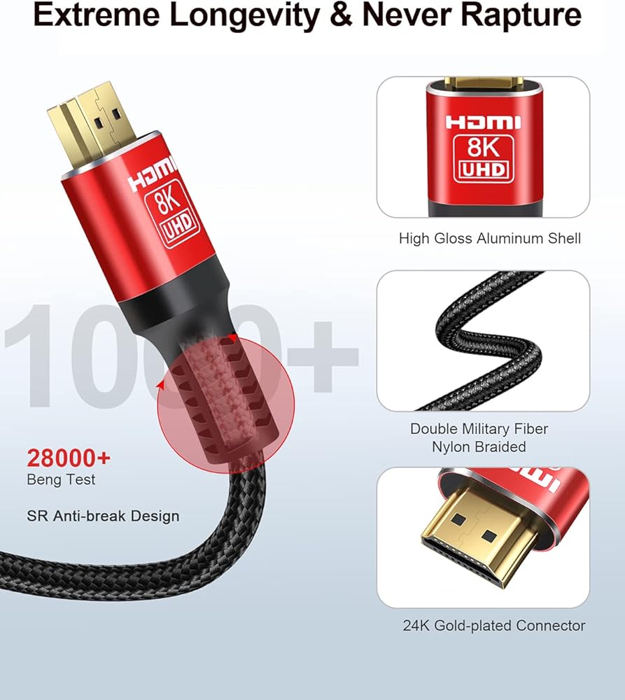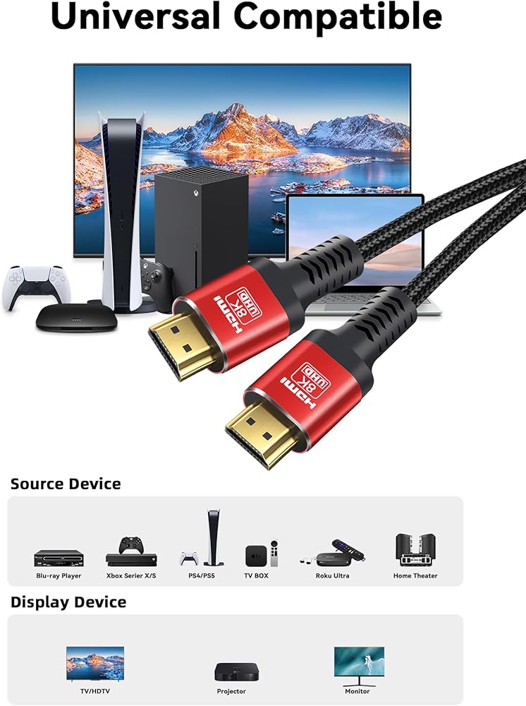 • 【كابل HDMI فائق السرعة】كابلات SKW 8K HDMI 2.1 مصنوعة من درع معدني أساسي ومتعدد الطبقات، مما يضمن نقل مستقر وEMI منخفض لتقليل احتمالية التداخل مع الإشارة اللاسلكية. وهو يتوافق مع HDMI 2.1 ومتوافق أيضًا مع الإصدارات السابقة من HDMI 2.0b/2.0a/1.4/1.3/1.2/1.1. بالمقارنة مع HDMI 2.0 و1.4، تدعم قدرة عرض النطاق الترددي المتزايدة للكابل ما يصل إلى 48 جيجابت في الثانية.