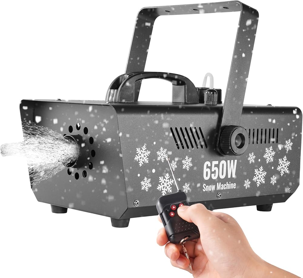 Stable Performance: Featuring an advanced electronic temperature control system and high-quality chips, the snow making machine uses a high-pressure air pump to transform snow fluid (not included) into snowflakes. Its performance remains stable and smooth, now enhanced with built-in RGB ambient lighting that automatically changes color for a mesmerizing effect.