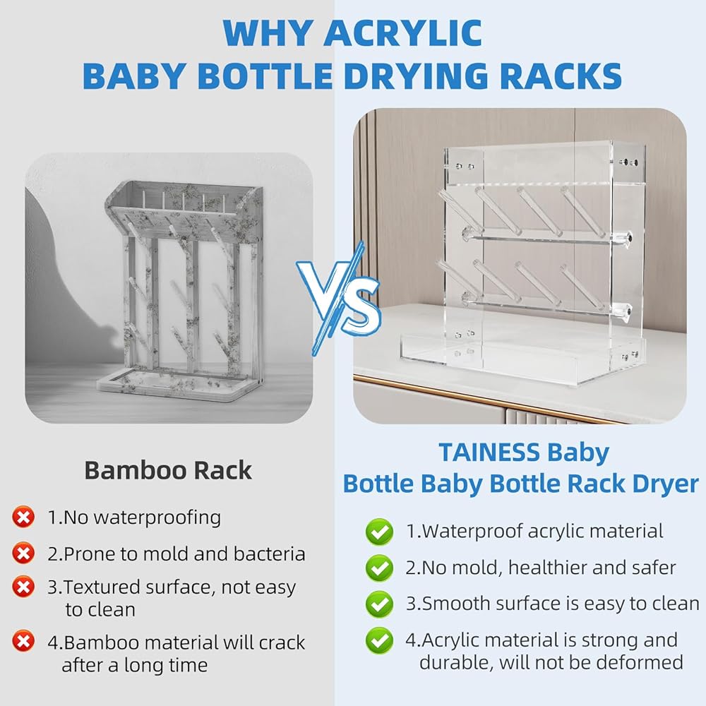 4.KEEP DRYING: The baby bottle dryer has a vertical structure that keeps baby's small parts dry and away from water