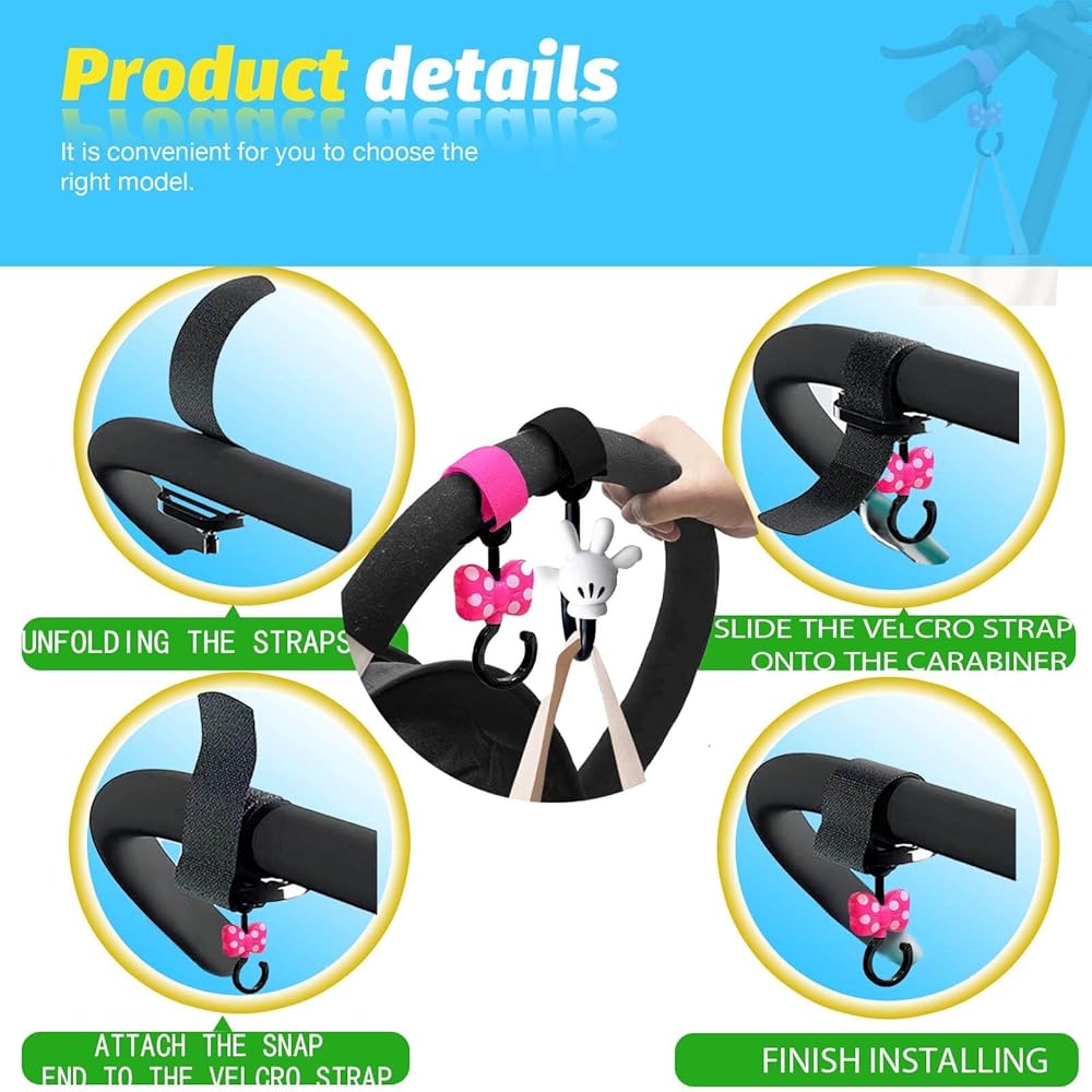 تطبيق واسع: خطافات عربة الأطفال مثالية لعربات الأطفال وعربات الأطفال، كما أنها مناسبة للكراسي المتحركة والسيارات والدراجات وعربات التسوق والمزيد. يستخدم على نطاق واسع في العديد من السيناريوهات، وهو أمر ضروري للتسوق والمشي والسفر، وصغير الحجم ومحمول، ويمكن تخزينه بسهولة في حقيبة أو تعليقه على عربة الأطفال.
