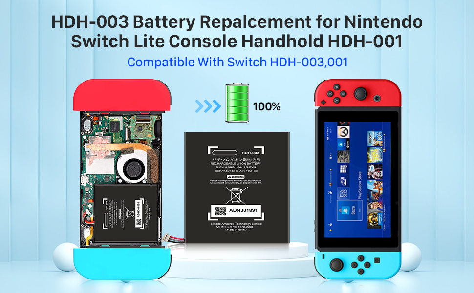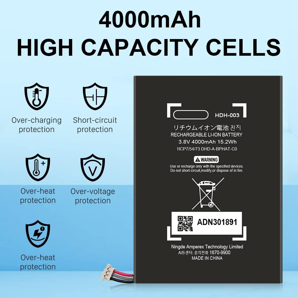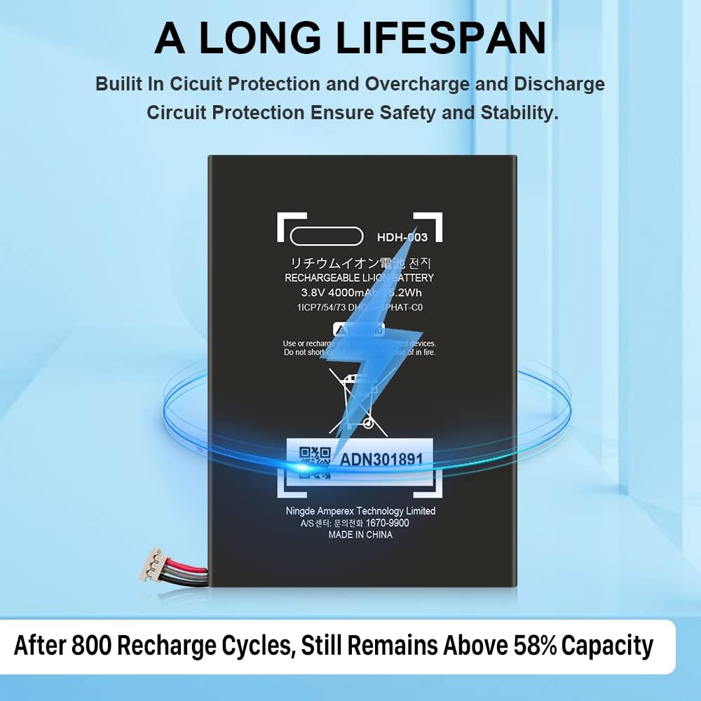 • 🎮【استبدال بطارية ترقية 4000 مللي أمبير في الساعة】(تدوم طويلاً/0 دورة) بطارية جديدة عالية الجودة محدثة لـ HDH-003 مصنوعة من خلية بطارية ليثيوم بوليمر ذات مستوى عالمي، التكنولوجيا المتقدمة تجعل سعة البطارية لدينا تصل إلى 4000 مللي أمبير في الساعة بنفس الحجم.
