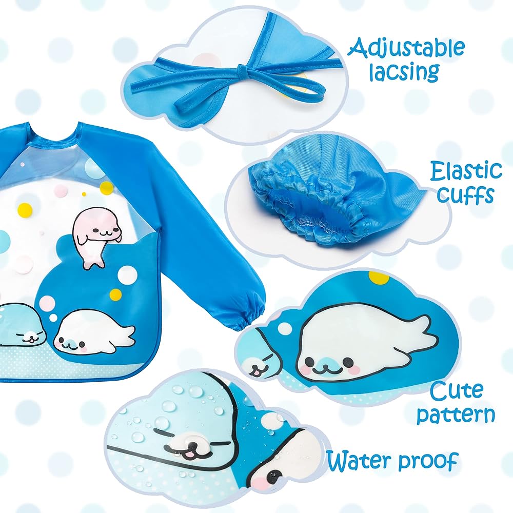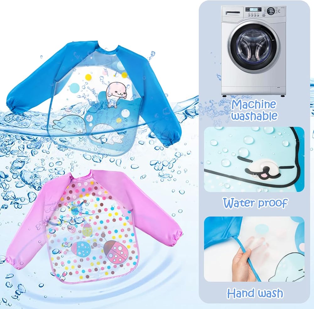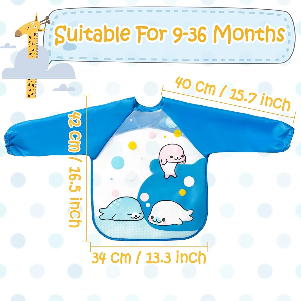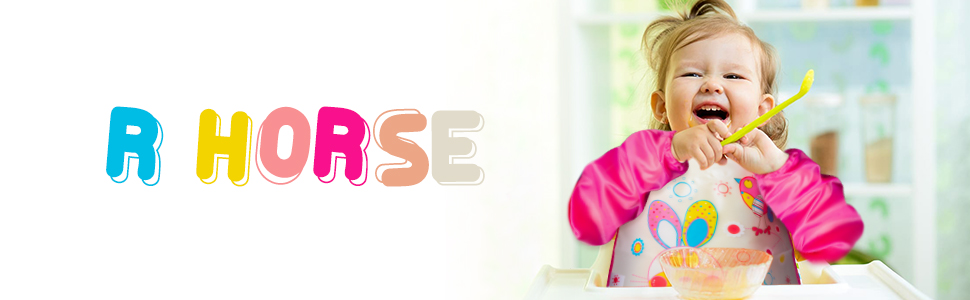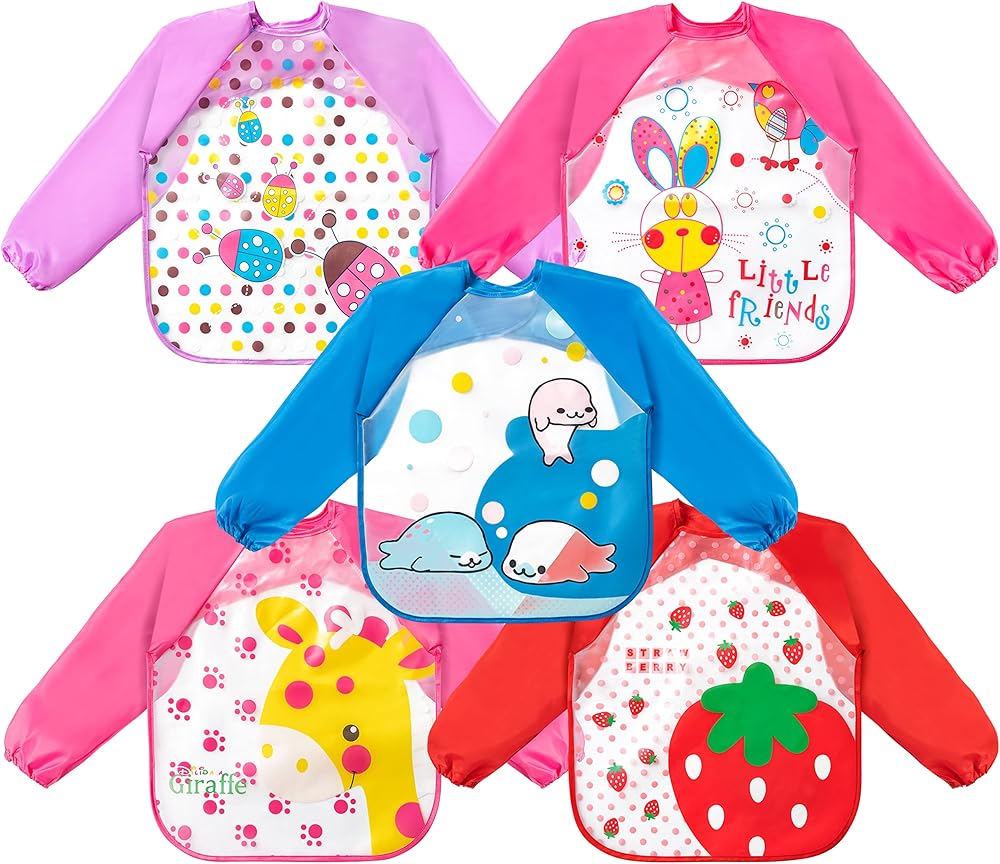 R HORSE 5 قطع مريلة بأكمام طويلة للأطفال الصغار مريلة ذات أكمام مقاومة للماء مرايل تغذية الرضع الملونة مع نمط الزرافة والأرنب والفراولة هدية لاستحمام الطفل