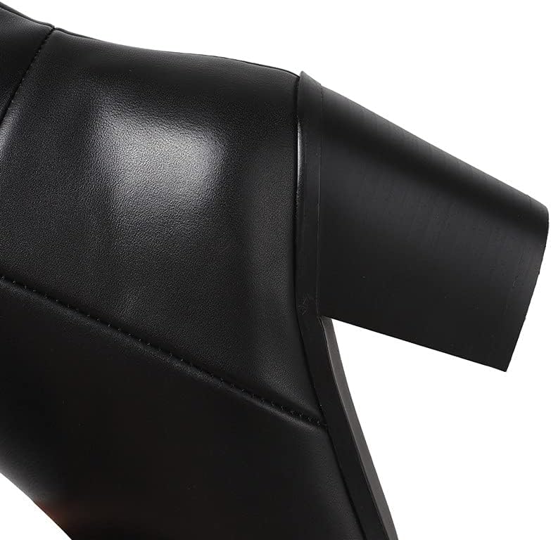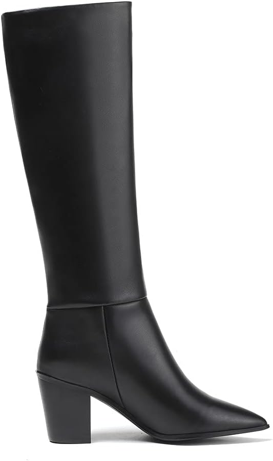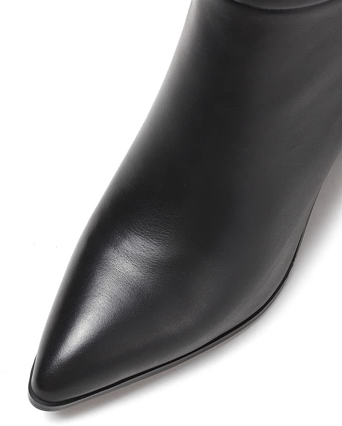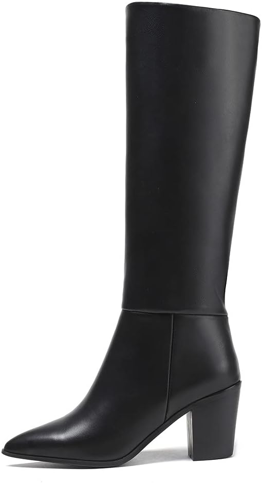 حذاء TinaCus بمقدمة مدببة من الجلد الطبيعي مصنوع يدويًا بكعب مكتنز سهل الارتداء للنساء كلاسيكي بطول الركبة (أسود، US7.5)