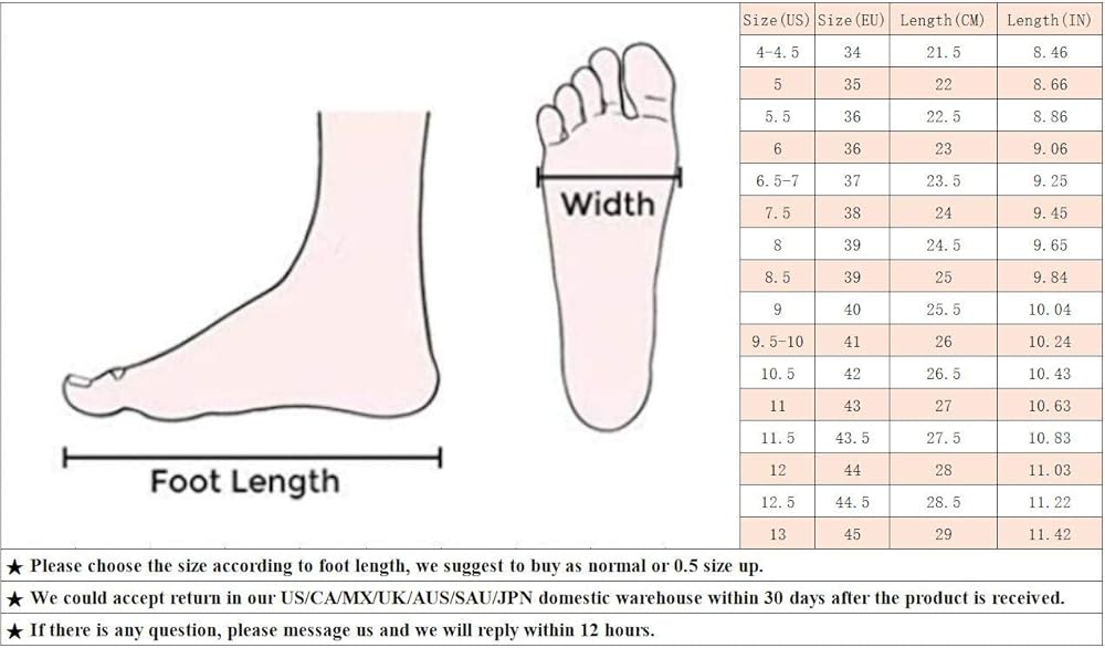 - جميع البيانات المذكورة أعلاه تأخذ المقاس الأمريكي 6 كمعيار للقياس