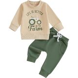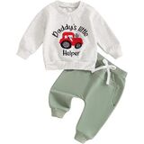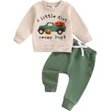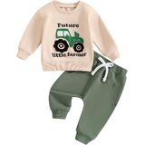 Little Boy 2 Piece Fall Outfit, Letter Tractor Print Long Sleeve Sweatshirt Elastic Waist Pants with Pockets
