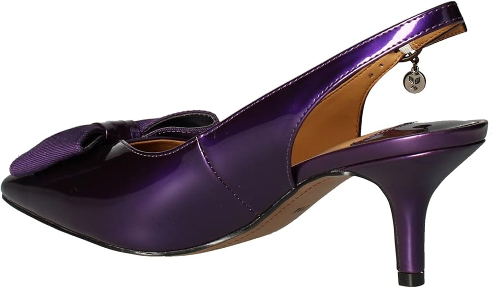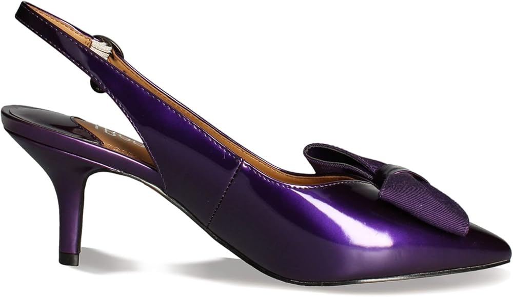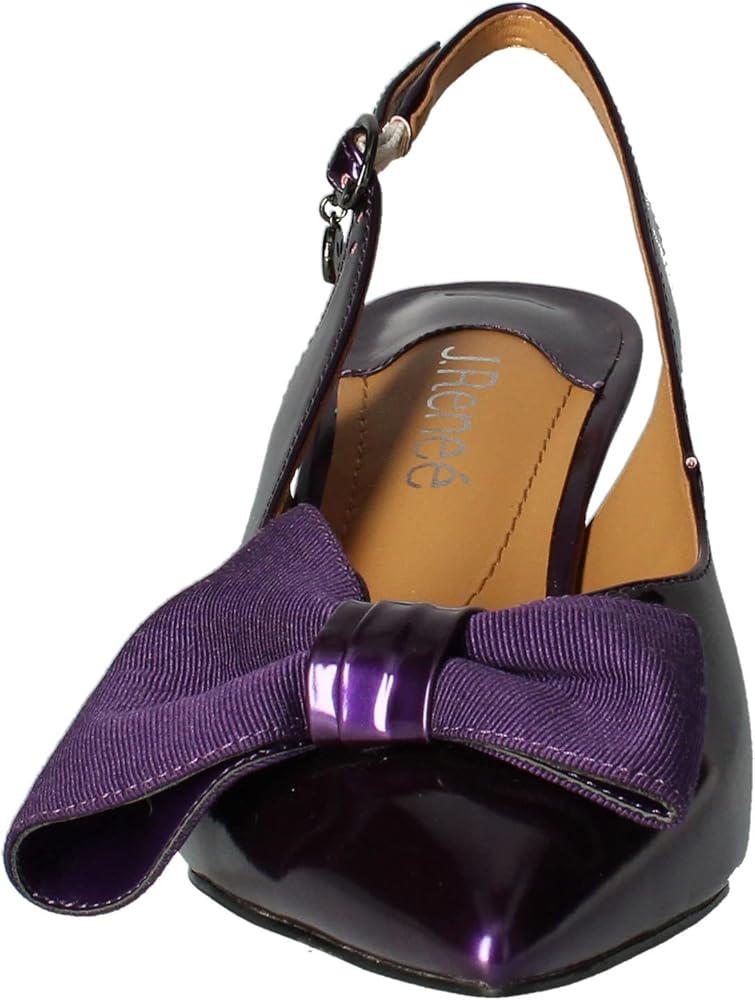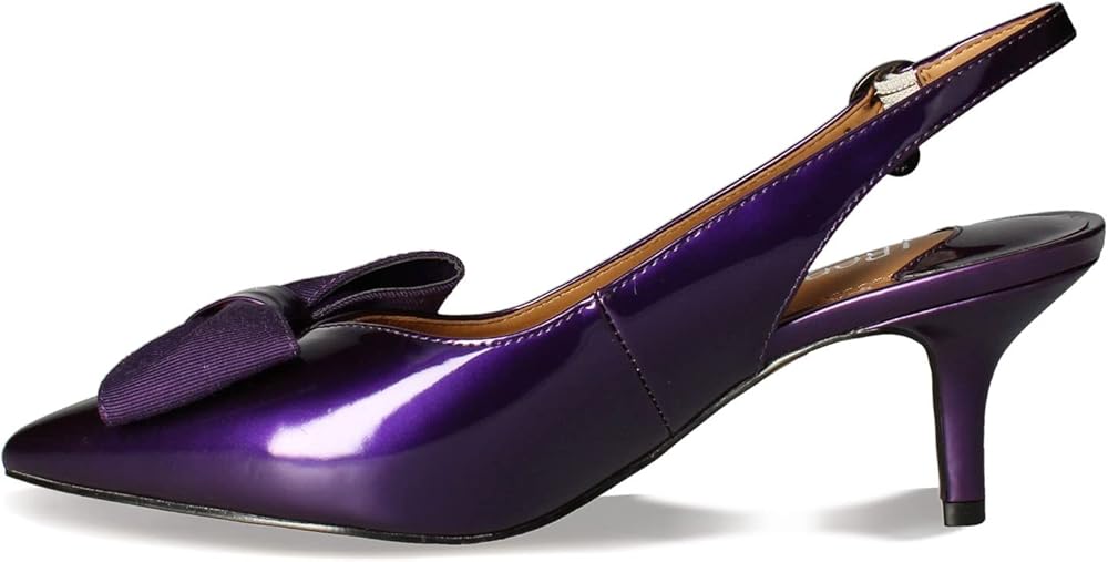 The J. Renee Devika offers a timeless, polished look to your classic styling. Pair with your favorite dress or skirt for an elevated look. Slip on style with adjustable ankle buckle closure. Pointed toe with bow detail on vamp in a kitten heel. Upper, lining, and insole made of synthetic material. Textile outsole.