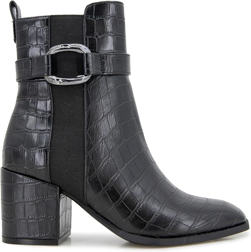 • Heeled ankle bootie.
