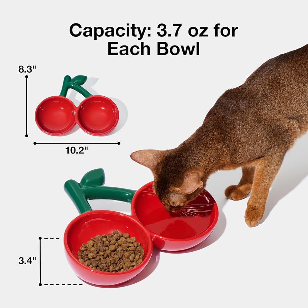 وعاء الحيوانات الأليفة من السيراميك من VETRESKA بتصميم مائل لتغذية الحيوانات الأليفة للطعام والماء ومضاد للقيء وأوعية القطط للقطط الداخلية ووعاء قطط الكرز اللطيف آمن للاستخدام في غسالة الأطباق