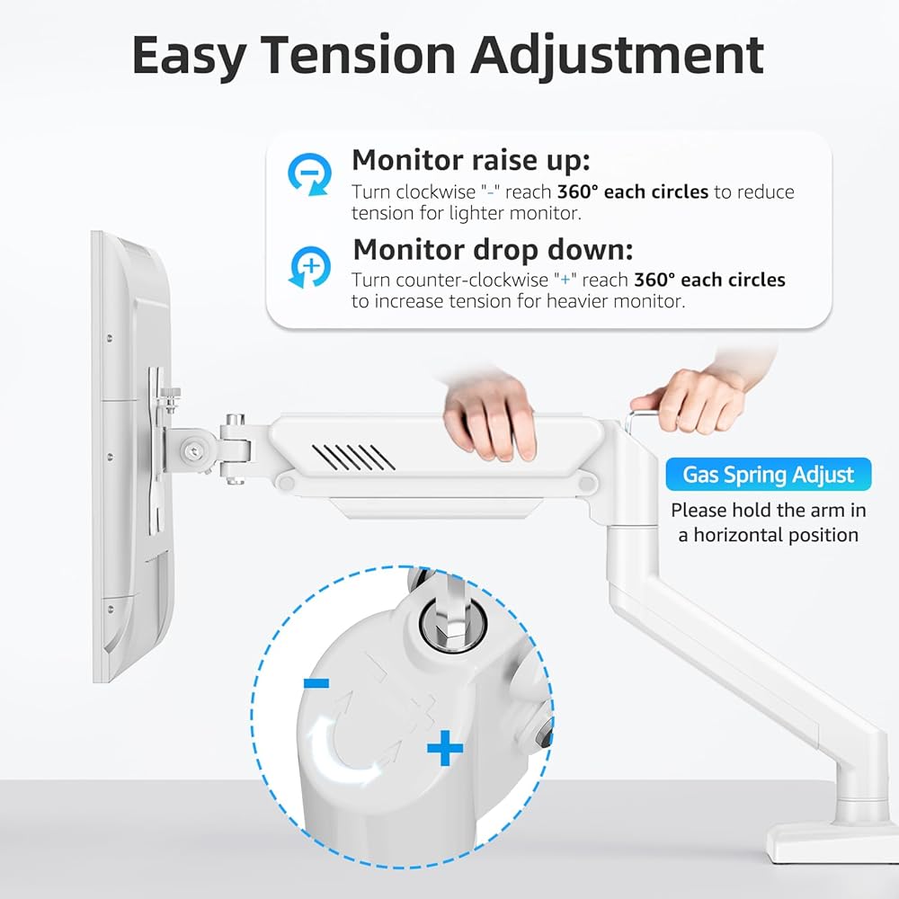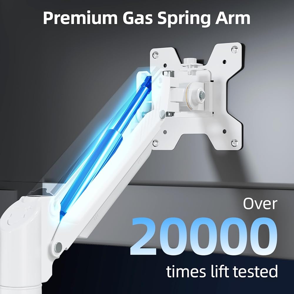 • تعديل زنبرك الغاز لتشغيل سلس: يتميز حامل الشاشة الفردي بنظام زنبرك غاز مدمج، مما يسمح بتعديل سهل بناءً على وزن شاشتك. سواء كنت تقوم بإعادة وضع الشاشة للحصول على زاوية أفضل أو التبديل بين المهام، فإن زنبرك الغاز يضمن حركة سلسة ومستقرة لشاشتك، مما يخلق تجربة مستخدم أفضل.