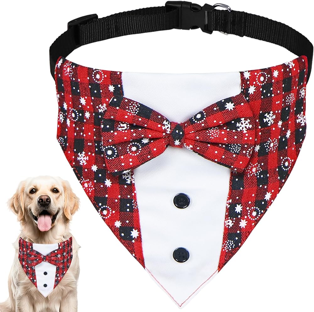 تصميم فريد: تم تصميم زي السهرة الرسمية لعيد الميلاد هذا للكلاب بألوان حمراء وخضراء كلاسيكية لعيد الميلاد، والتي ستضيف المزيد من جو عيد الميلاد إلى حيواناتك الأليفة المحبوبة. تأتي منديل بدلة عيد الميلاد بتصميم مفتوح، مما يسمح لك بتغيير الطوق لكلبك لتلبية احتياجاتك. يساعد طوق الكلب القابل للتعديل على جعل بدلة الكلب تناسب رقبة حيوانك الأليف بشكل أفضل.