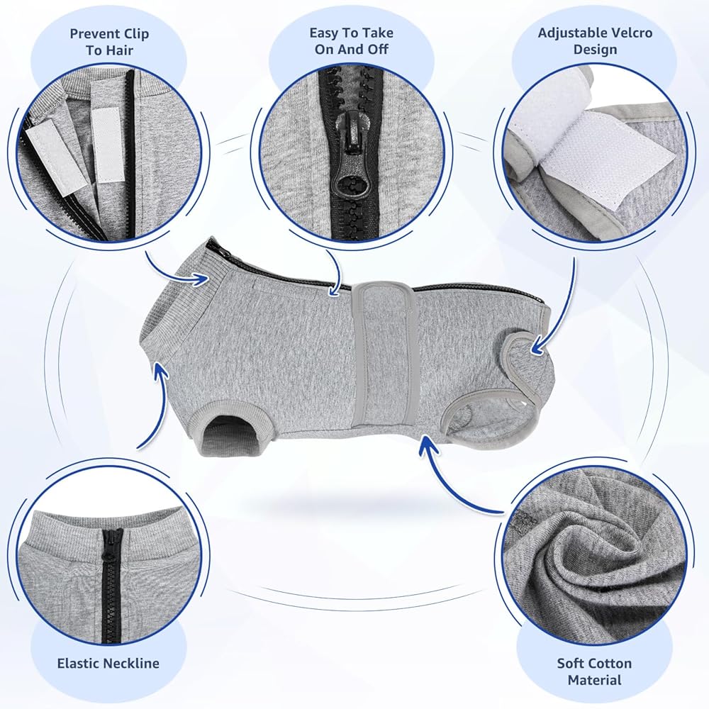 سحاب على الظهر لسهولة الارتداء --- سحاب عالي الجودة مصمم بشكل فريد على الظهر، بدلة تعافي الكلاب SlowTon تجعل من السهل ارتداؤها بمجرد الدخول والسحاب. البطانة الإضافية والشريط السحري يجعل السحاب أكثر سلاسة دون الإمساك بشعر الكلب. مناسبة للكلاب الصغيرة والمتوسطة والكبيرة في جميع السلالات.