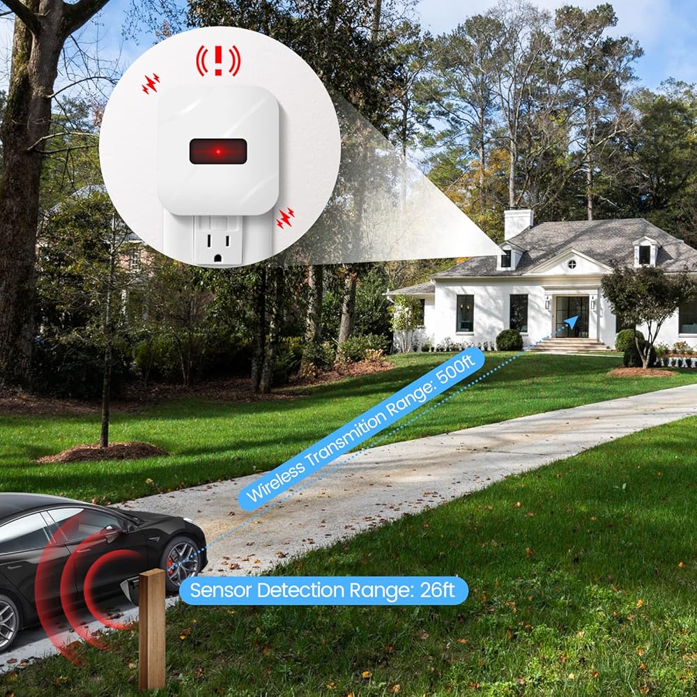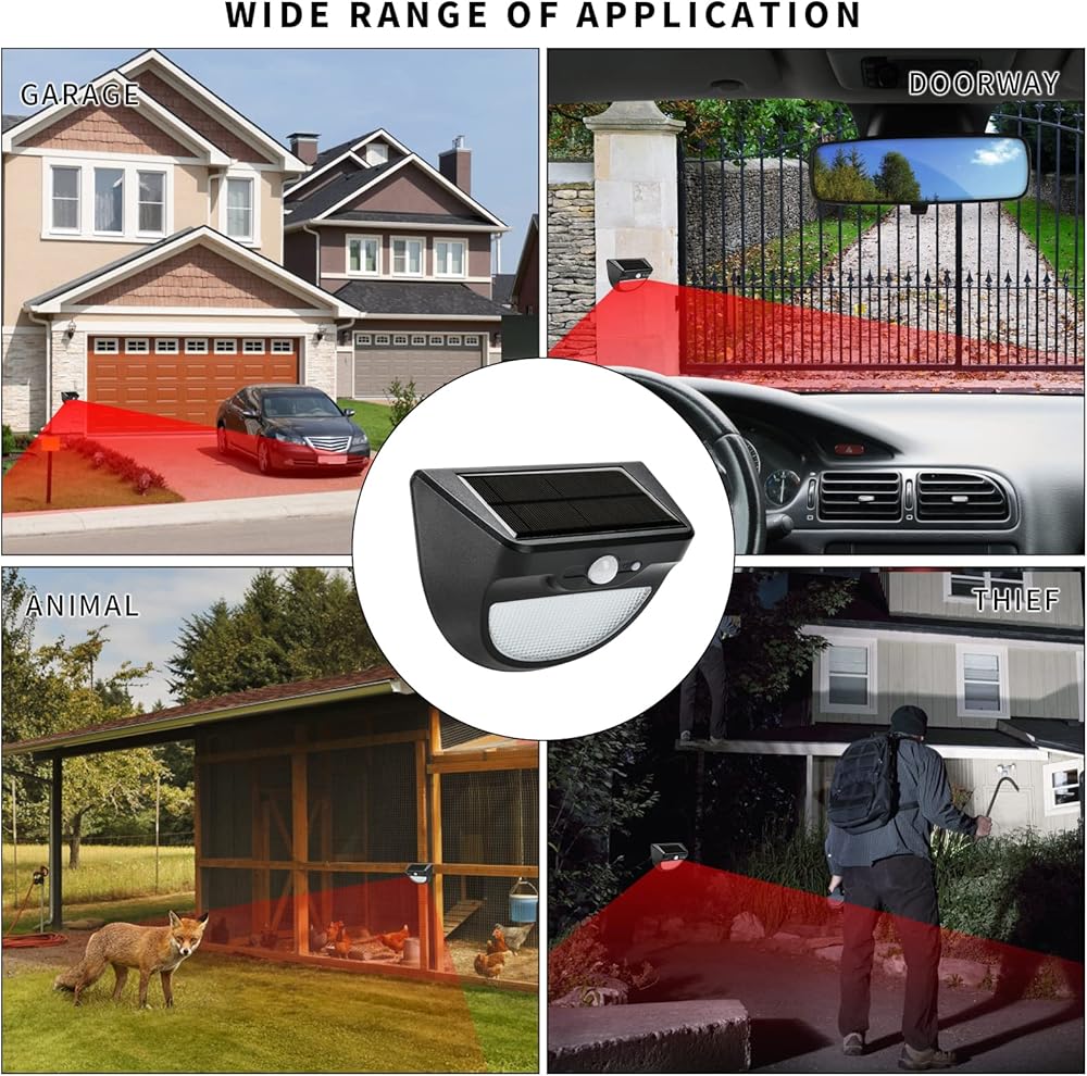 حماية سلامة الممتلكات الخاصة بك: يمكن لجهاز استشعار الحركة الخاص بنا اكتشاف متى تعبر المركبات أو الأشخاص أو الحيوانات خط الدفاع الخاص بك، وفي المرة الأولى لإرسال إشارات إلى جهاز الاستقبال الداخلي، يمكنك معرفة في الوقت المناسب ما إذا كان هناك ساعي أو زوار أو ضيوف غير مدعوين للحماية سلامة الممتلكات الخاصة بك