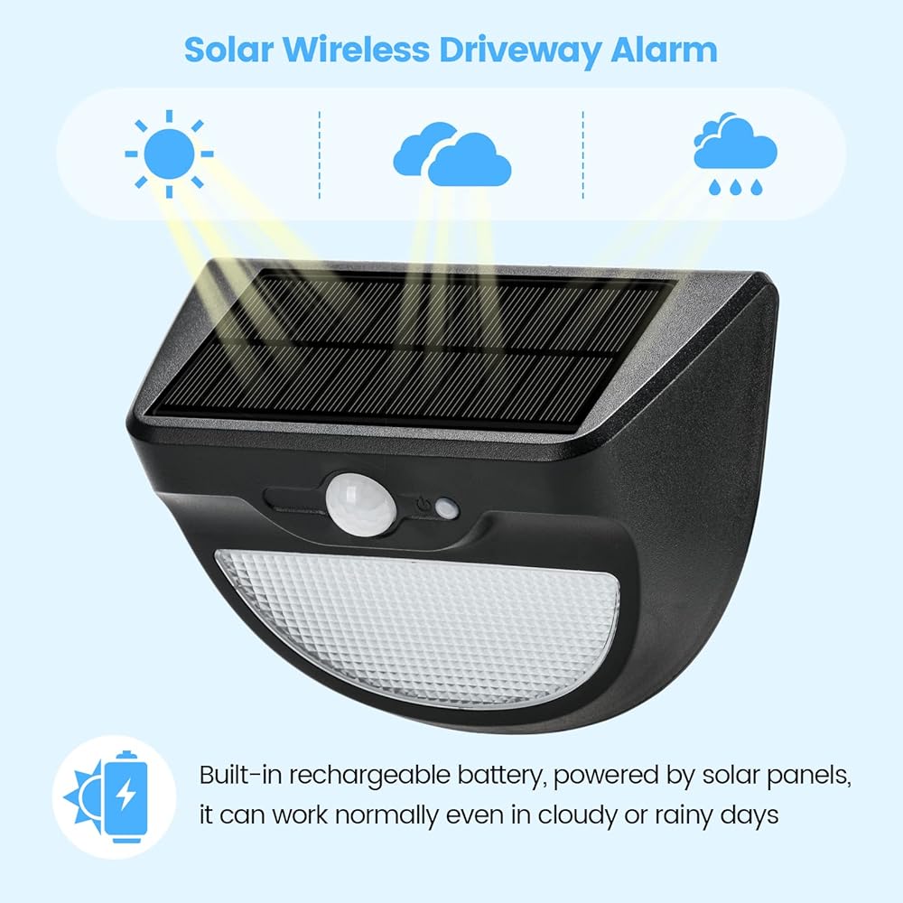 تطبيق واسع: يعد منبه الممر الذي يعمل بالطاقة الشمسية مثاليًا لأي تطبيق خارجي، وهو مثالي للأشخاص ذوي الممرات الطويلة، والذين يعيشون في المساحات الخاصة أو المناطق الريفية، ومراقبة المركبات / الأشخاص / الحيوانات بشكل فعال الذين يدخلون ويخرجون من ممتلكاتك، مما يوفر أمانًا حقيقيًا لمنزلك.