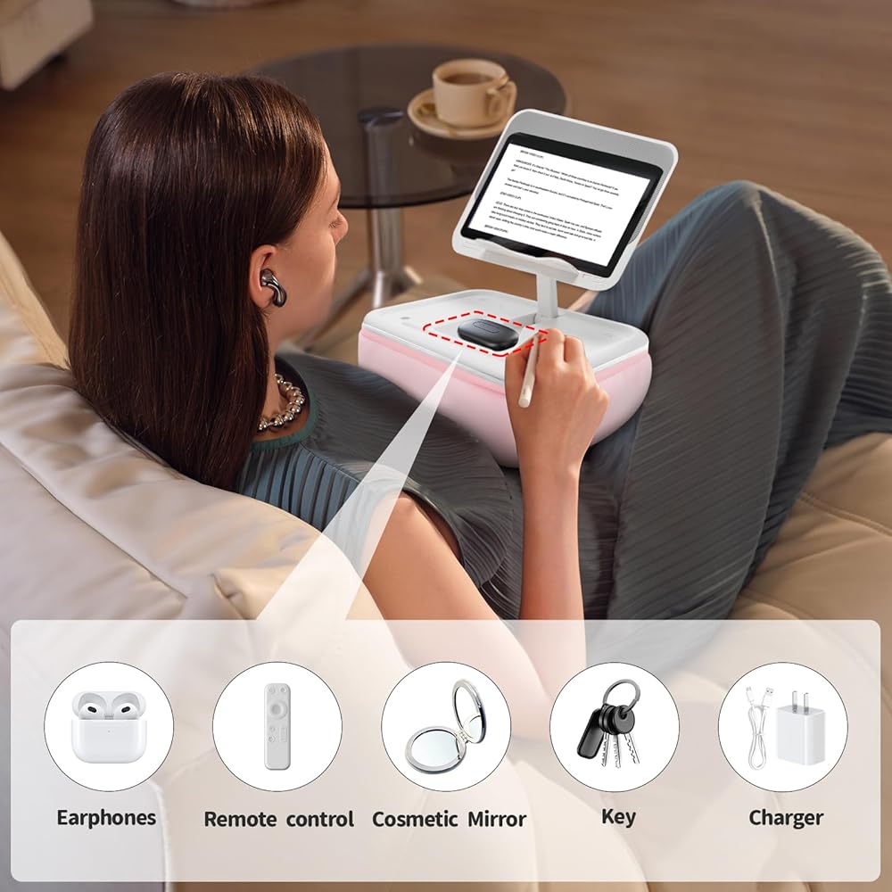 سطح دعم واسع - يتميز حامل الوسادة كيندل هذا بلوحة دعم كبيرة، مما يجعله مناسبًا لمعظم أحجام الأجهزة اللوحية، بما في ذلك كيندل، آيباد، جوجل، قارئات سامسونج الإلكترونية، آيفون، وأجهزة الكمبيوتر المحمولة. ويتيح تصميمه الاستخدام المتزامن لجهازين إلكترونيين، مما يوفر بيئة مريحة للدراسة أو الترفيه أو العمل.