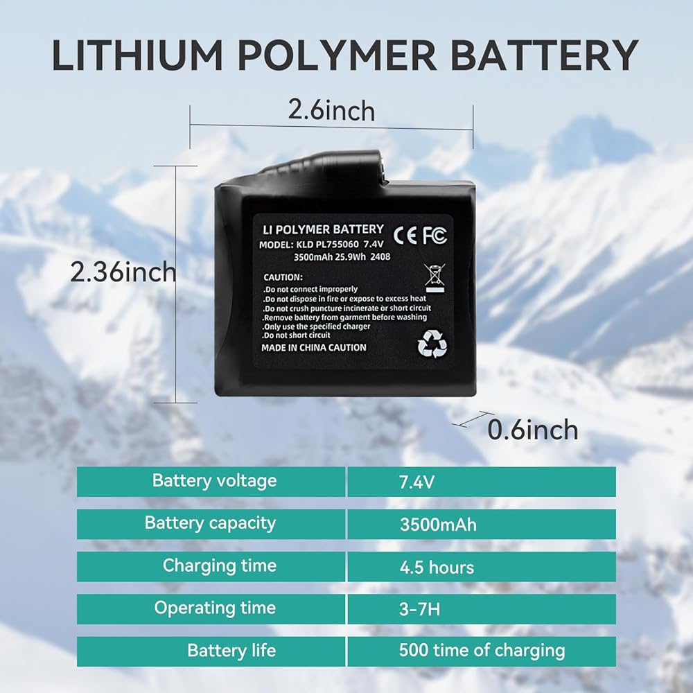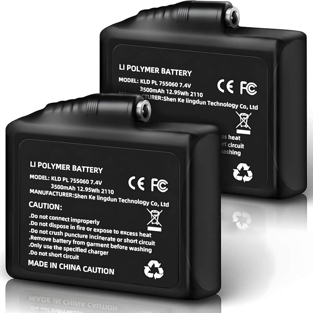 حزمة بطارية 3500 مللي أمبير 7.4 فولت مكونة من قطعتين، بطاريات للقفازات الساخنة، استبدال بطارية ليثيوم بوليمر قابلة لإعادة الشحن، جوارب، قبعات، قفازات، سترة، سترة، واقي يد، أحذية طويلة، قبعة، دعامات الركبة