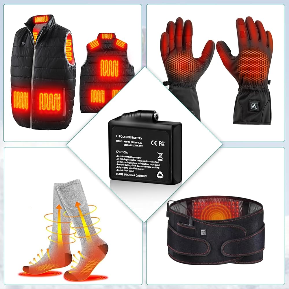 - بطارية بديلة للقفازات الساخنة: مناسبة لقفازات التدفئة والجوارب والقبعات والسترات والملابس ودعامات الظهر والأحذية والنعال ومنصات الركبة وما إلى ذلك.